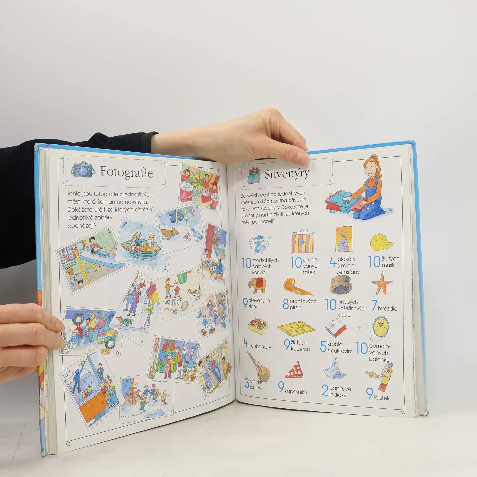 Tato veselá a nápaditá knížka je doslova napěchována několika tisícovkami věcí, které můžete hledat a počítat celé hodiny. Přitom si o nich lze zajímavě povídat a současně luštit zábavné hádanky, pomáhající dětem se začátky čtení a počítání.