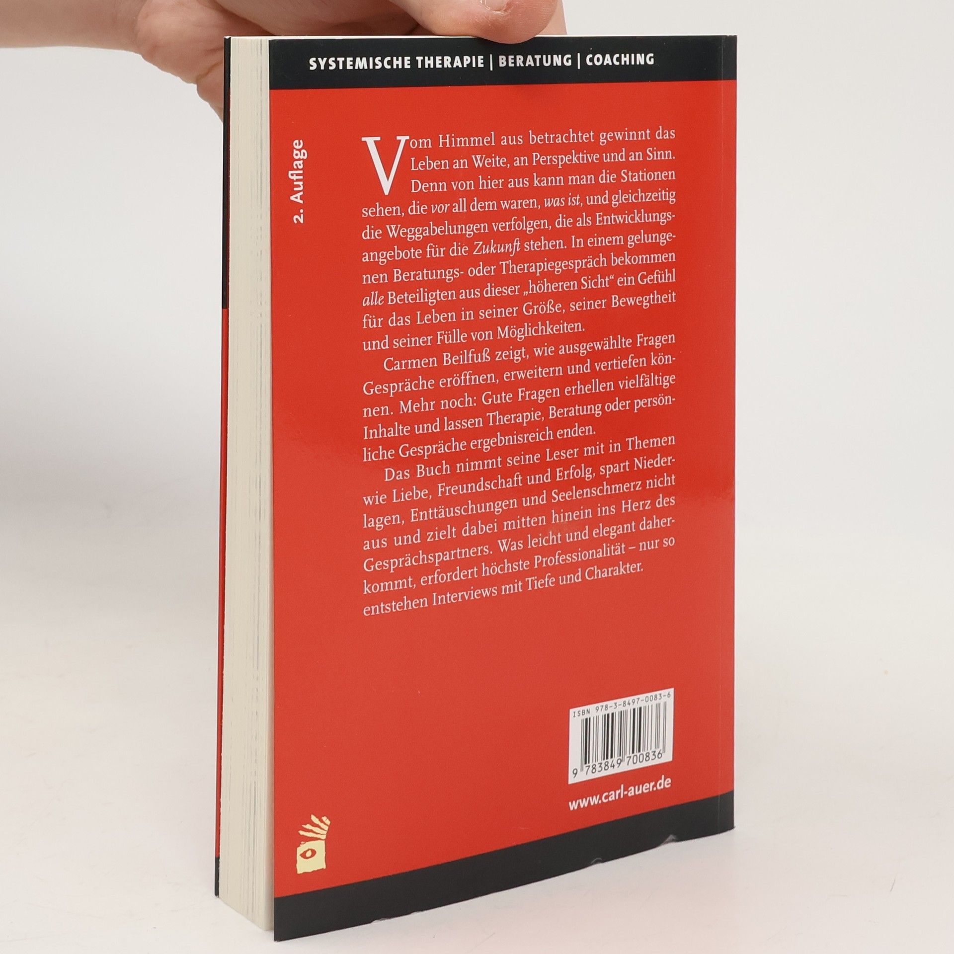 Vom Himmel aus betrachtet gewinnt das Leben an Weite, an Perspektive und an Sinn. Denn von hier aus kann man die Stationen sehen, die v o r all dem waren, w a s i s t, und gleichzeitig die Weggabelungen verfolgen, die als Entwicklungsangebote für d i e Z u k u n f t stehen. In einem Beratungs- oder Therapiegespräch bekommt der Klient (s)eine eigene Geschichte und spürt die Chancen dessen, was vor ihm liegt. Carmen Beilfuß zeigt, wie ausgewählte Fragen Gespräche eröffnen, erweitern und vertiefen können. Mehr noch: Gute Fragen erhellen vielfältige Inhalte und lassen Therapie, Beratung oder persönliche Gespräche ergebnisreich enden. Das Buch nimmt seine Leser mit in Themen wie Liebe, Freundschaft und Erfolg, spart Niederlagen, Enttäuschungen und tief empfundenen Seelenschmerz nicht aus, zielt mitten hinein ins Herz des Gesprächspartners. Was leicht und elegant daherkommt, erfordert höchste Professionalität – nur so entstehen Interviews mit Tiefe und Charakter.
