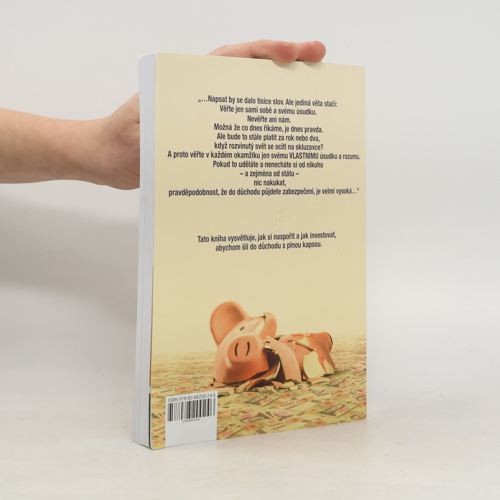 Tato kniha vysvětluje, jak si naspořit a jak investovat, abychom šli do důchodu s plnou kapsou. Na střadatele se valí čím dál víc nebezpečí: Inflace, rostoucí dluhy vlád, zvyšování daní, stále větší regulace, přibývající zákazy… V takovém světě se leckomu může zdát téměř nemožné vydělat a našetřit peníze a dlouhodobě udržet jejich hodnotu. A přece to možné je. Známí ekonomové Markéta Šichtařová a Vladimír Pikora, autoři několika bestsellerů, nositelé ceny čtenářů Magnesia Litera a popularizátoři světa peněz ve své knize vysvětlují, jak lze peníze rozmnožit i uchovat. Nejde přitom o žádná kouzla nebo kdovíjak riskantní strategie. Stačí znalost současného dění, elementárních ekonomických zákonitostí a trocha inspirace v minulosti, aby se před námi poodhalila i naše finanční budoucnost.