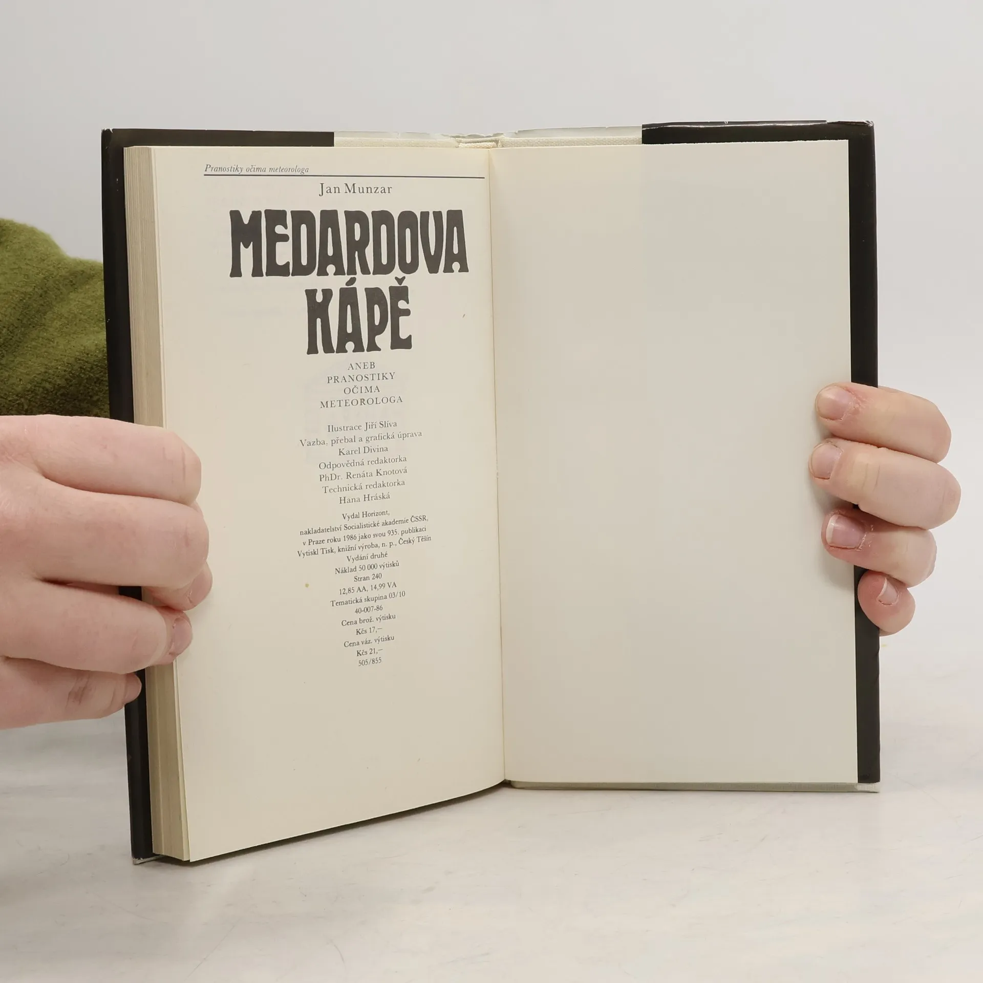 Skladem máme celkem knihy Medardova kápě aneb Pranostiky očima meteorologa (1986).