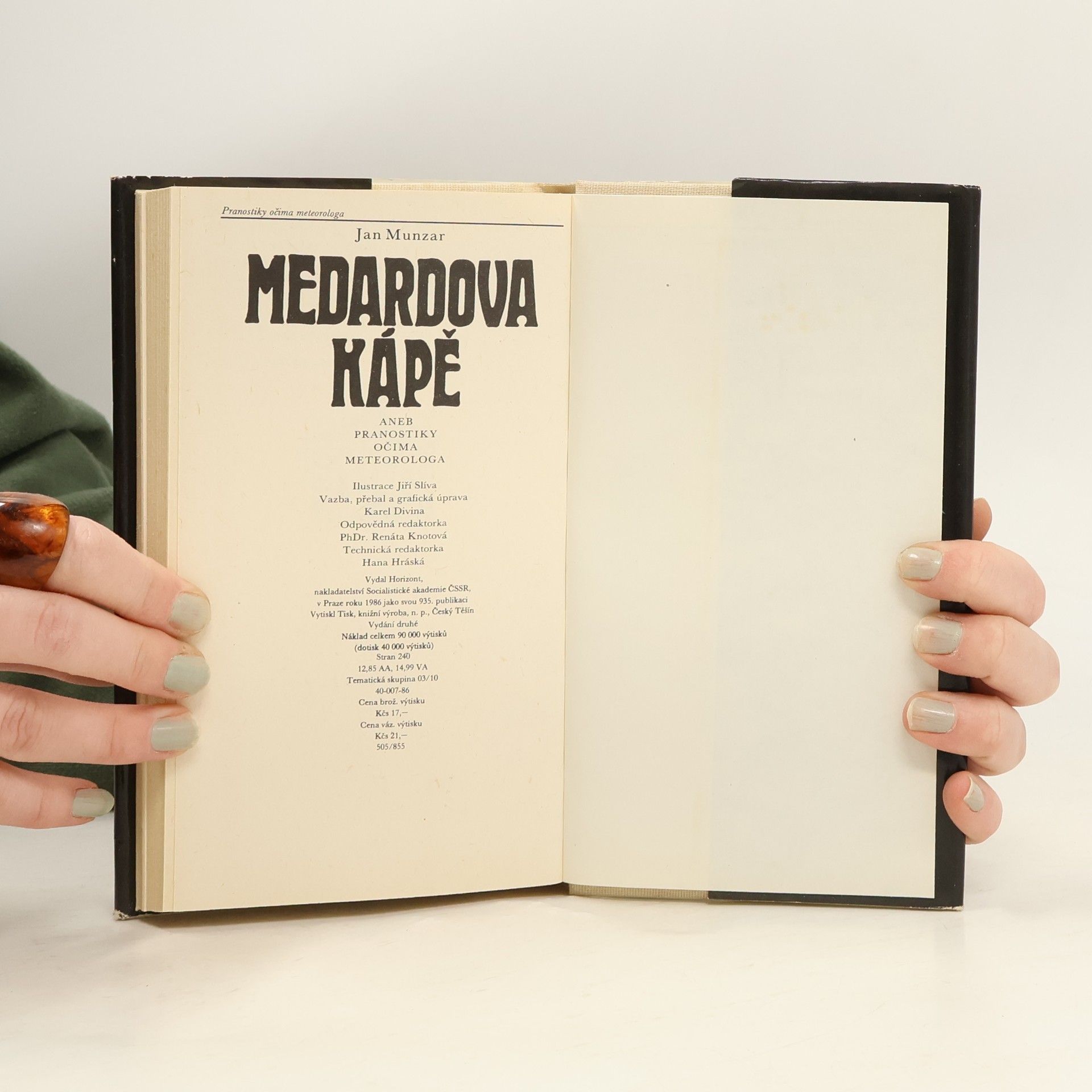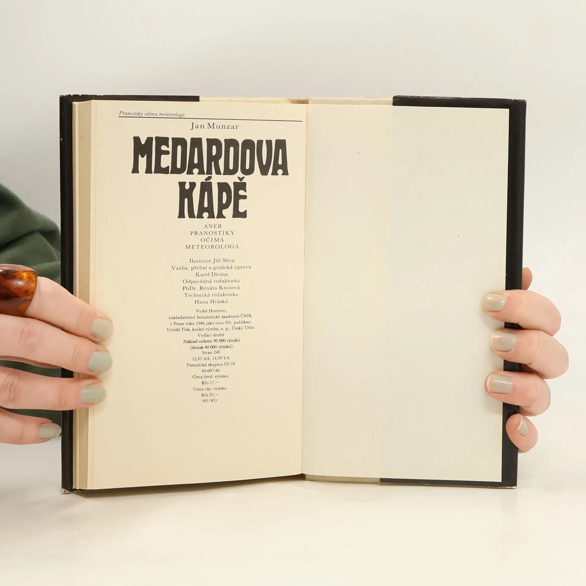 Skladem máme celkem knihy Medardova kápě aneb Pranostiky očima meteorologa (1986).