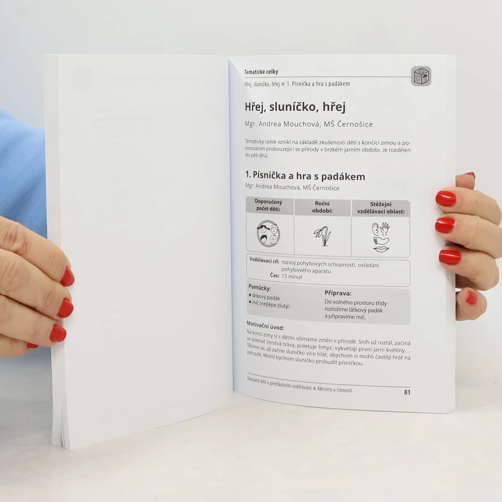 Soubor samostatných aktivit i tematických celků, které zpracovaly zkušené učitelky z mateřských škol na základě činností vyzkoušených s dvouletými dětmi.U každé aktivity je přehledně uveden doporučený počet dětí, rozvíjené oblasti, roční období pro realizaci i náročnost na přípravu.