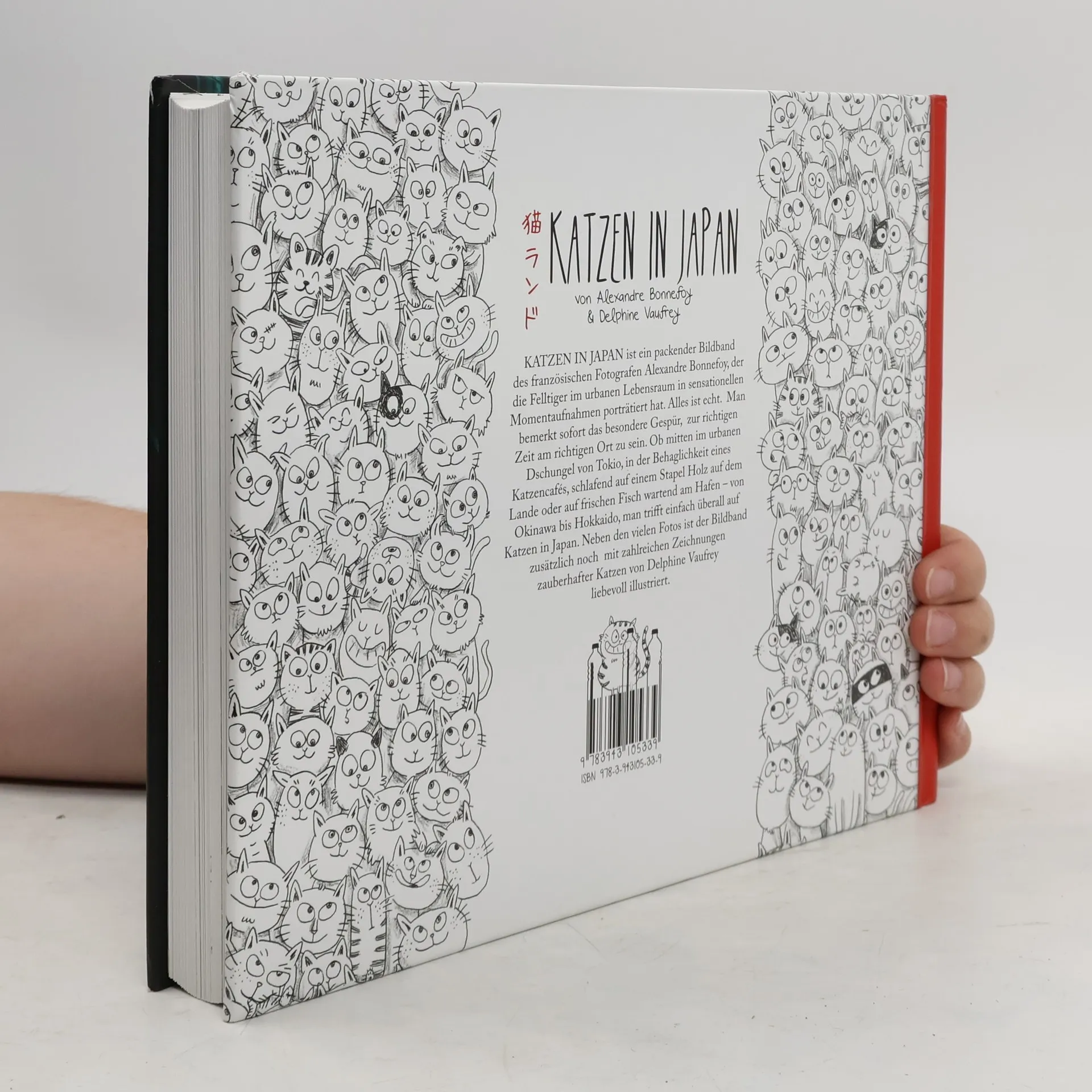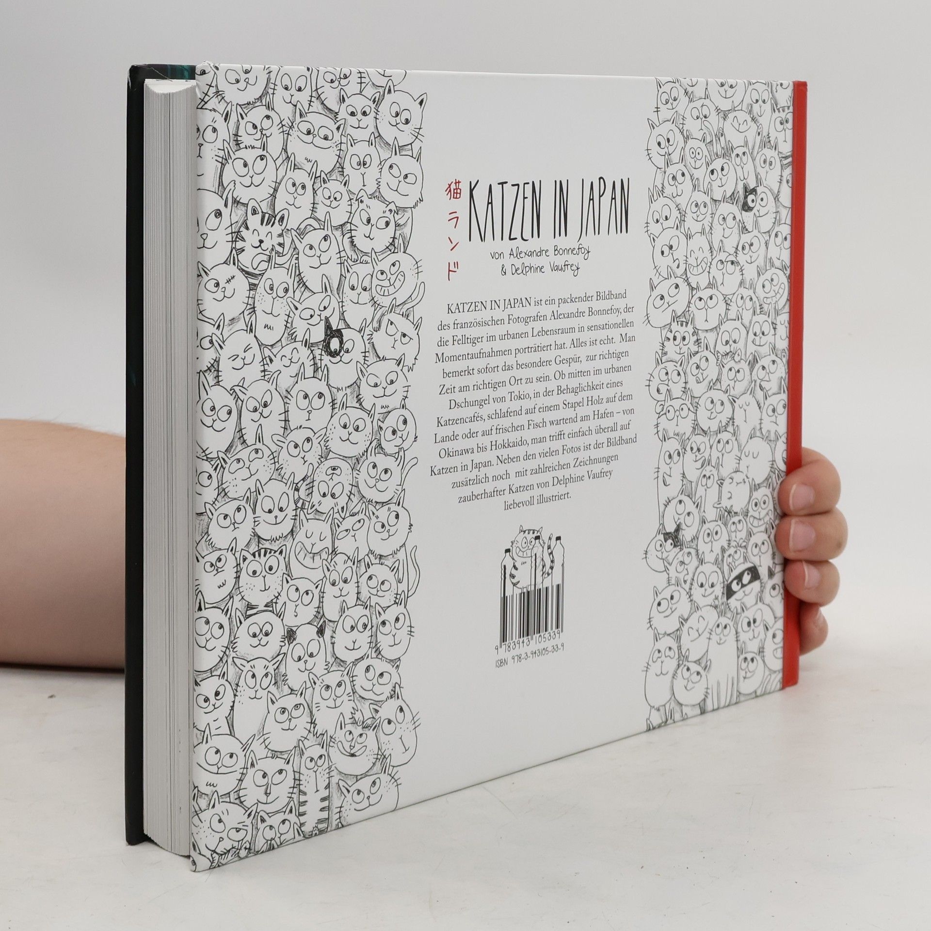 KATZEN IN JAPAN ist ein packender Bildband des französischen Fotografen Alexandre Bonnefoy, der die Felltiger im urbanen Lebensraum in sensationellen Momentaufnahmen porträtiert hat. Alles ist echt. Man bemerkt sofort das besondere Gespür, zur richtigen Zeit am richtigen Ort zu sein. Ob mitten im urbanen Dschungel von Tokio, in der Behaglichkeit eines Katzencafés, schlafend auf einem Stapel Holz auf dem Lande oder auf frischen Fisch wartend am Hafen – von Okinawa bis Hokkaido, man trifft einfach überall auf Katzen in Japan. Neben den vielen Fotos ist der Bildband zusätzlich noch mit zahlreichen Zeichnungen zauberhafter Katzen von Delphine Vaufrey liebevoll illustriert. KATZEN IN JAPAN—an enthralling illustrated book by French photographer Alexandre Bonnefoy who has captured the velvet paws in their urban habitat with his sensational snap-shots. Everything is real. You will note instantly his keen sense of being in the right place, at the right time. Whether in the midst of Tokyo's urban jungle, in the ease and comfort of a Cat Café, or slumbering on a wooden pile in the countryside, or awaiting freshly caught fish in the port—from Okinawa to Hakkaido, you will find cats everywhere in Japan. In addition to the numerous photographs this illustrated volume contains many enchanting portrayals of cats, lovingly designed by Delphine Vaufrey.