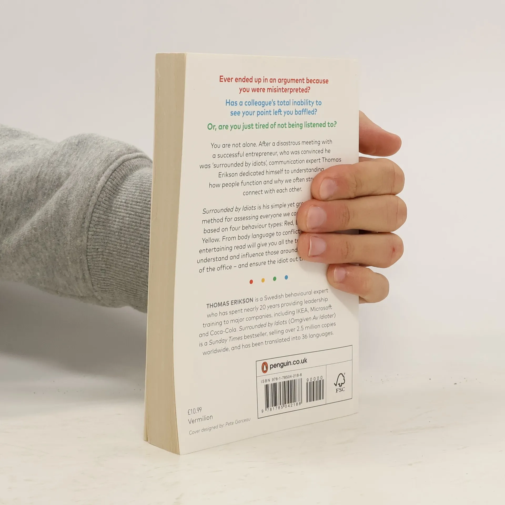 You are not alone. After a disastrous encounter with a successful entrepreneur convinced he was surrounded by idiots, communication expert and bestselling author Thomas Erikson committed to understanding human behavior and the challenges of connecting with different personality types. Originally published in Swedish in 2014, this work has become an international sensation, selling over 1.5 million copies globally. It presents a groundbreaking method for assessing personalities based on four types—Red, Blue, Green, and Yellow—and offers insights on adjusting communication styles accordingly. Erikson aids in self-understanding, enhancing communication and social skills, managing conflicts, and improving relationships with colleagues and superiors. He provides practical tips on body language, written communication, and knowing when to engage or withdraw in conversations. Filled with enlightening moments, this guide empowers you to understand and influence those around you, even those you find perplexing. With a bit of luck, you may also realize that the "idiot" in the room isn't you!