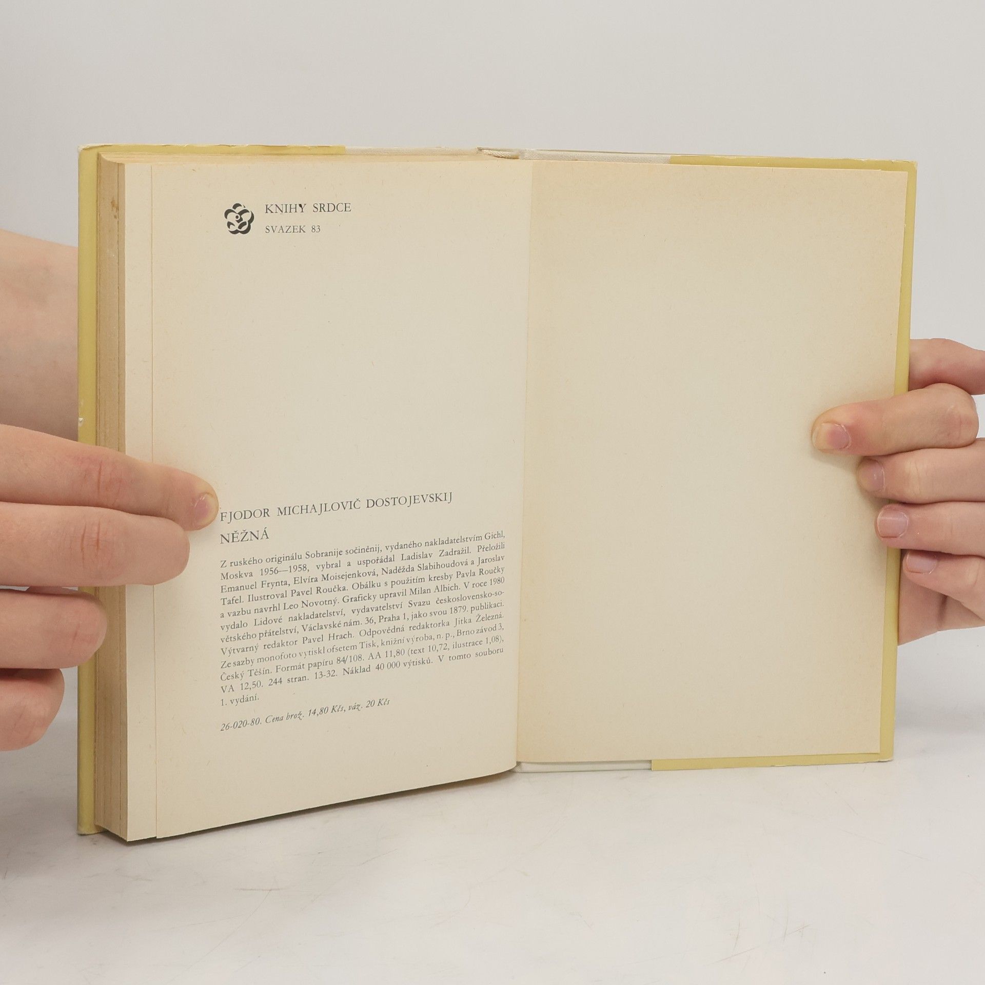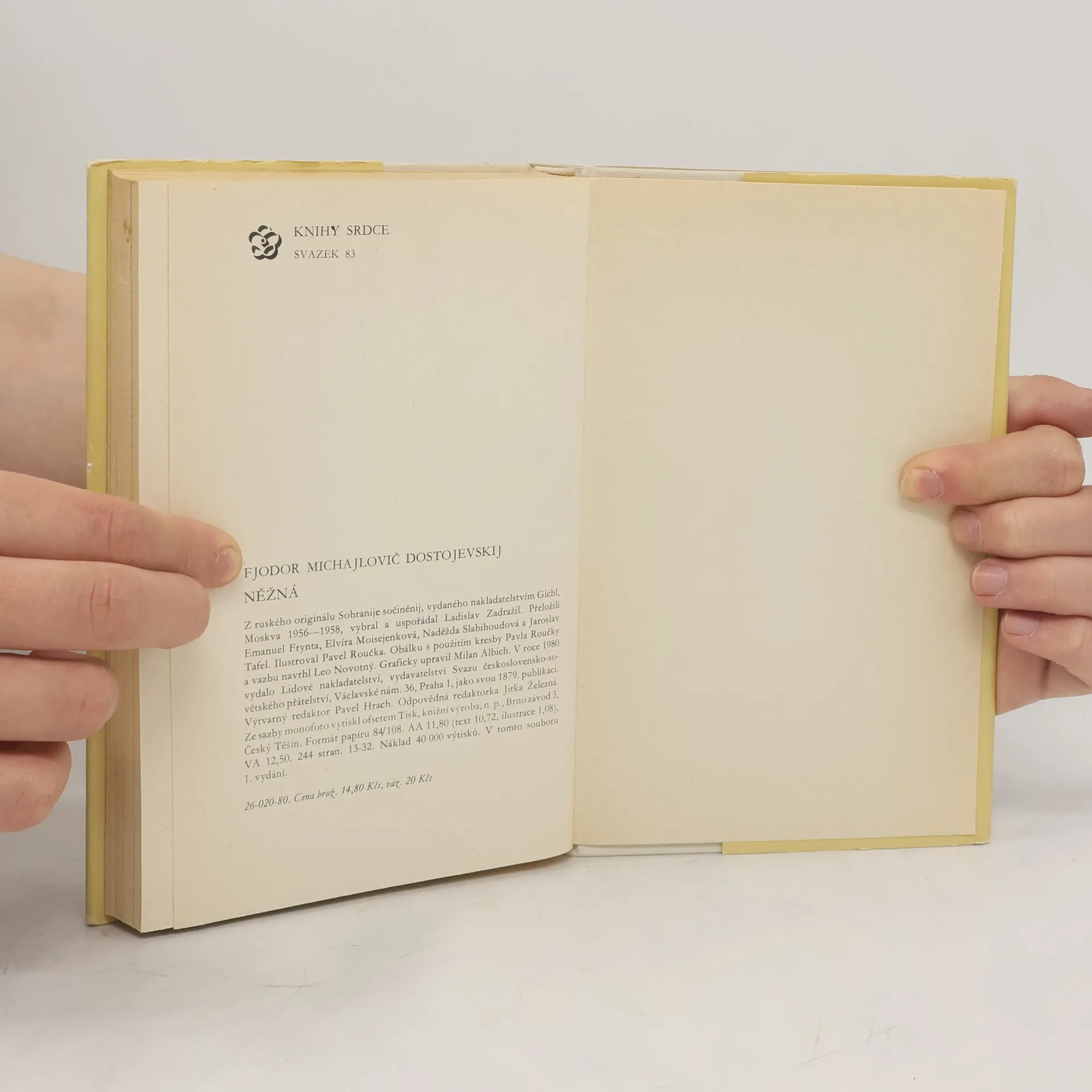 Čtyři drobné milostné prózy. Titulní povídka Něžná je známa i z televizního zpracování. Nerovný svazek mladičké dívky, sirotka a usedlého zastavárníka s vyhraněným životním názorem vyúsťuje do naprostého nepochopení, které mladá žena řeší sebevraždou. Obdobná tematika, marná snaha ženy vymanit se z psychického nadvládí životního partnera, charakterizuje i povídku Bytná. Malý hrdina je svěží vylíčení prvního citového vzplanutí. Soubor uzavírá vrcholové dílo Dostojevského milostné epiky, lehce nadýchnuté vzpomínky na milostná zklamání, pastelově zasněné Bílé noci.