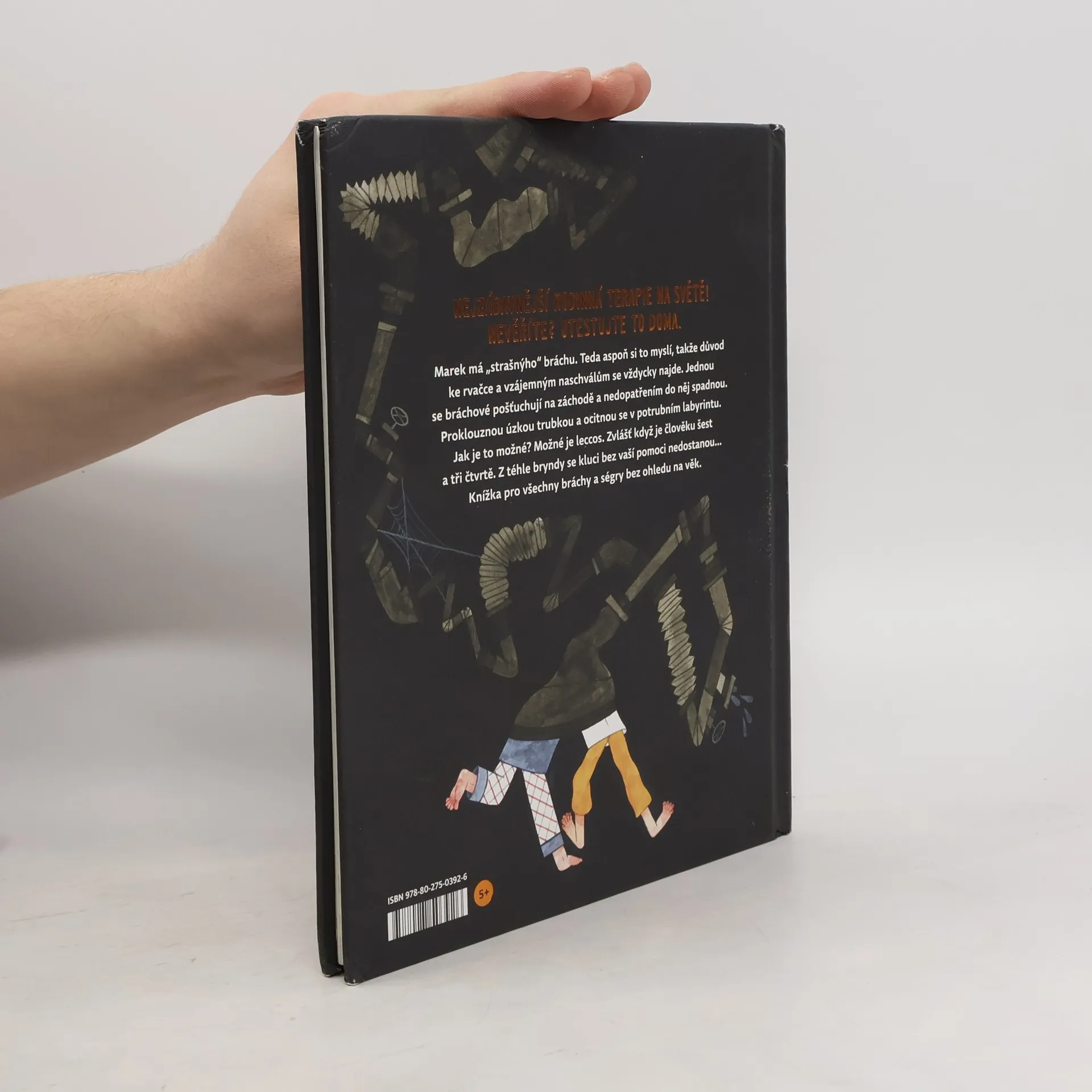 Marek má „strašnýho“ bráchu. Tedy aspoň si to myslí, a proto mu říká Mimoň. Jenže v určitém věku je každý mladší sourozenec strašný a věkový rozdíl dvou let je propastný jako Mariánský příkop. Takže je jasné, že důvod ke rvačce a vzájemným naschválům se vždycky najde. Zlobit se prostě může každý den, a to i v neděli. Jednou se bráchové zase pošťuchují, tentokrát na záchodě, až do něj nedopatřením spadnou. Proklouznou úzkou trubkou a ocitnou se v potrubním labyrintu. Jak je to možné? Možné je leccos. Zvlášť když je vám šest a tři čtvrtě. Dostat se z takové bryndy nebude jen tak. Cestou malé hrdiny potká nejeden zádrhel. Bez pomoci čtenářů to tentokrát nepůjde. Interaktivní ilustrovaná kniha pro všechny velké i malé sourozence.