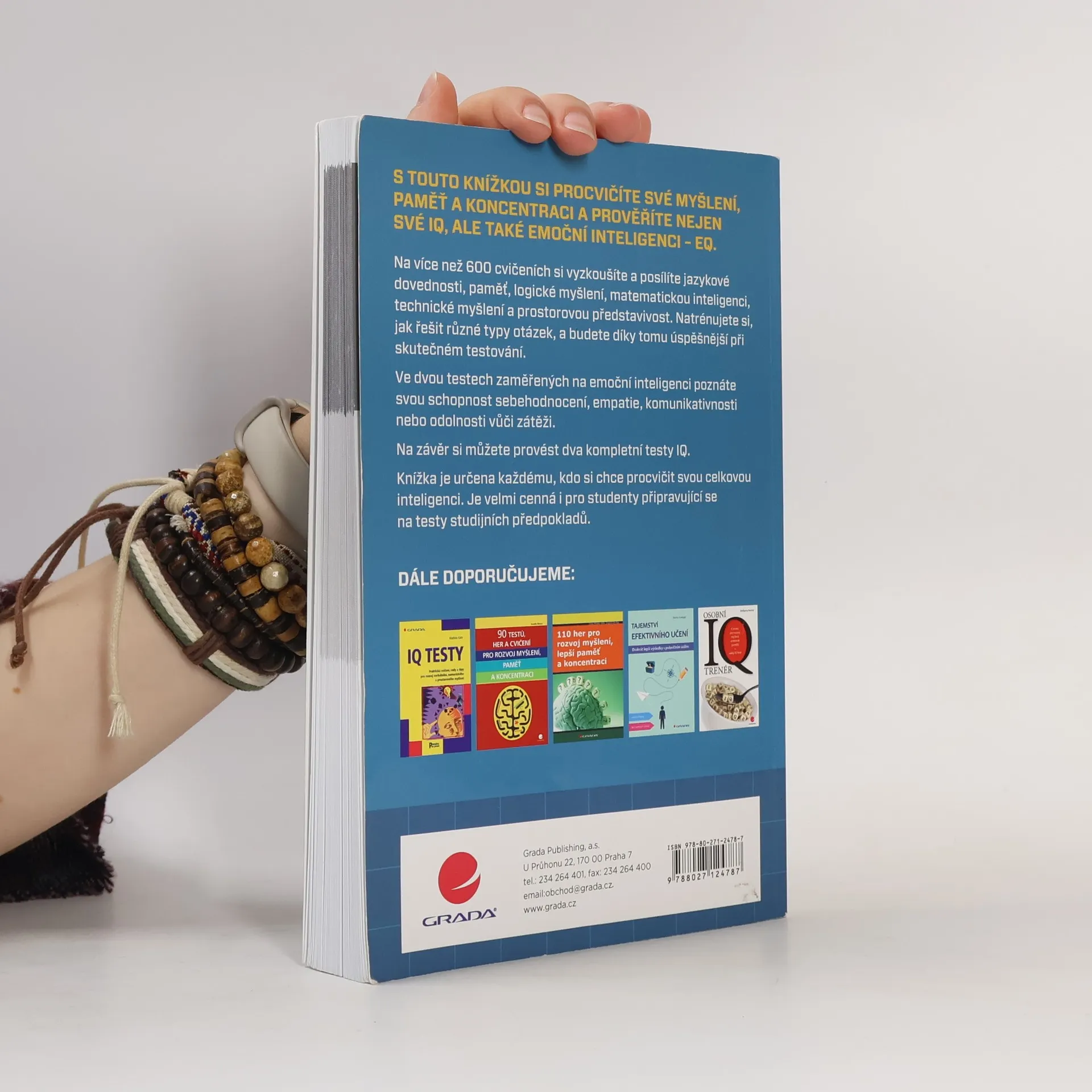 S touto knížkou si procvičíte své myšlení a zlepšíte nejen své IQ, ale také svou emoční inteligenci, tzv. EQ. Na více než 600 cvičeních si vyzkoušíte a posílíte jazykové dovednosti, paměť, logické a matematické myšlení a prostorové vnímání. Natrénujete si také, jak řešit různé typy otázek, a budete díky tomu úspěšnější při skutečném testování. Druhá část knížky nabízí cvičení zaměřené na EQ - od sebehodnocení, motivaci, empatii až po sociální dovednosti. Pomocí jednoduchých testů si rychle zkontrolujete své schopnosti a vlastnosti týkající se emoční inteligence. Na závěr si můžete provést dva komplexní testy IQ a prověřit si tak, co jste se naučili. Knížka je určena všem, kteří chtějí procvičovat svou celkovou inteligenci. Je velmi cenná pro studenty připravující se na testy studijních předpokladů.