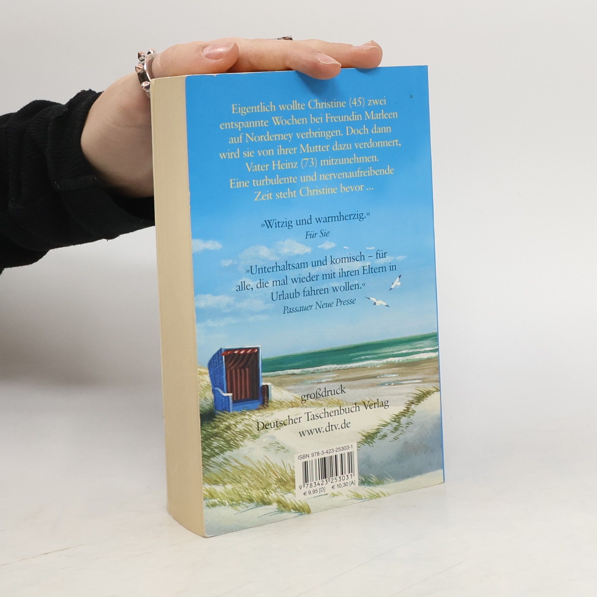 Der Bestseller jetzt in großer Schrift Eine herrlich komische Vater-Tochter-Geschichte! Es sollte ein toller Urlaub werden: Christine (45) will nach Norderney, um einer Freundin bei der Renovierung ihrer Kneipe zu helfen. Doch dann wird sie von ihrer Mutter dazu verdonnert, ihren Vater mitzunehmen. Kaum sind sie dort, übernimmt Heinz (73) auch sofort das Kommando auf der Baustelle. Es kommt für Christine aber noch schlimmer, als Papa erfährt, dass auf der Insel nach einem Heiratsschwindler gefahndet wird. Für Heinz ist klar: Das muss Johann sein, der mysteriöse Pensionsgast, der Christines Herz Kapriolen schlagen lässt. Mithilfe von Papas neuen Freunden – 72, 75, 63 Jahre alt – soll Johann zur Strecke gebracht werden... »Witzig und warmherzig.« Für Sie »Unterhaltsam und komisch – für alle, die mal wieder mit ihren Eltern in Urlaub fahren wollen.« Passauer Neue Presse