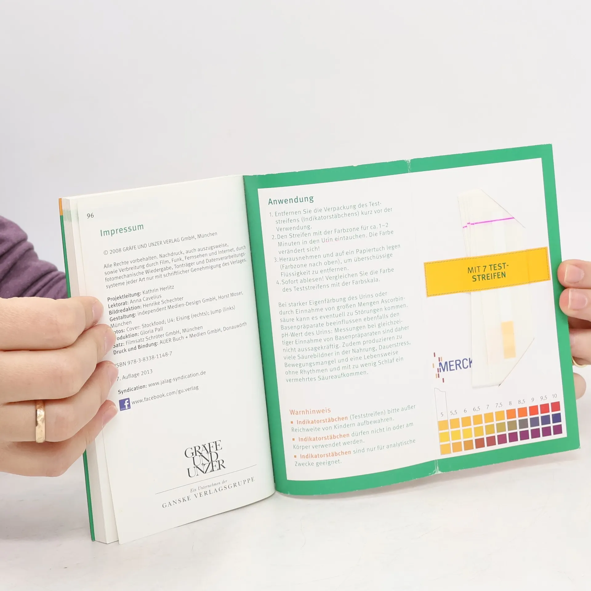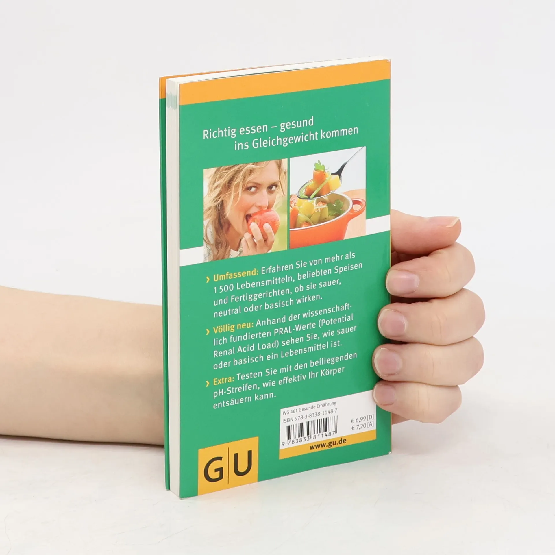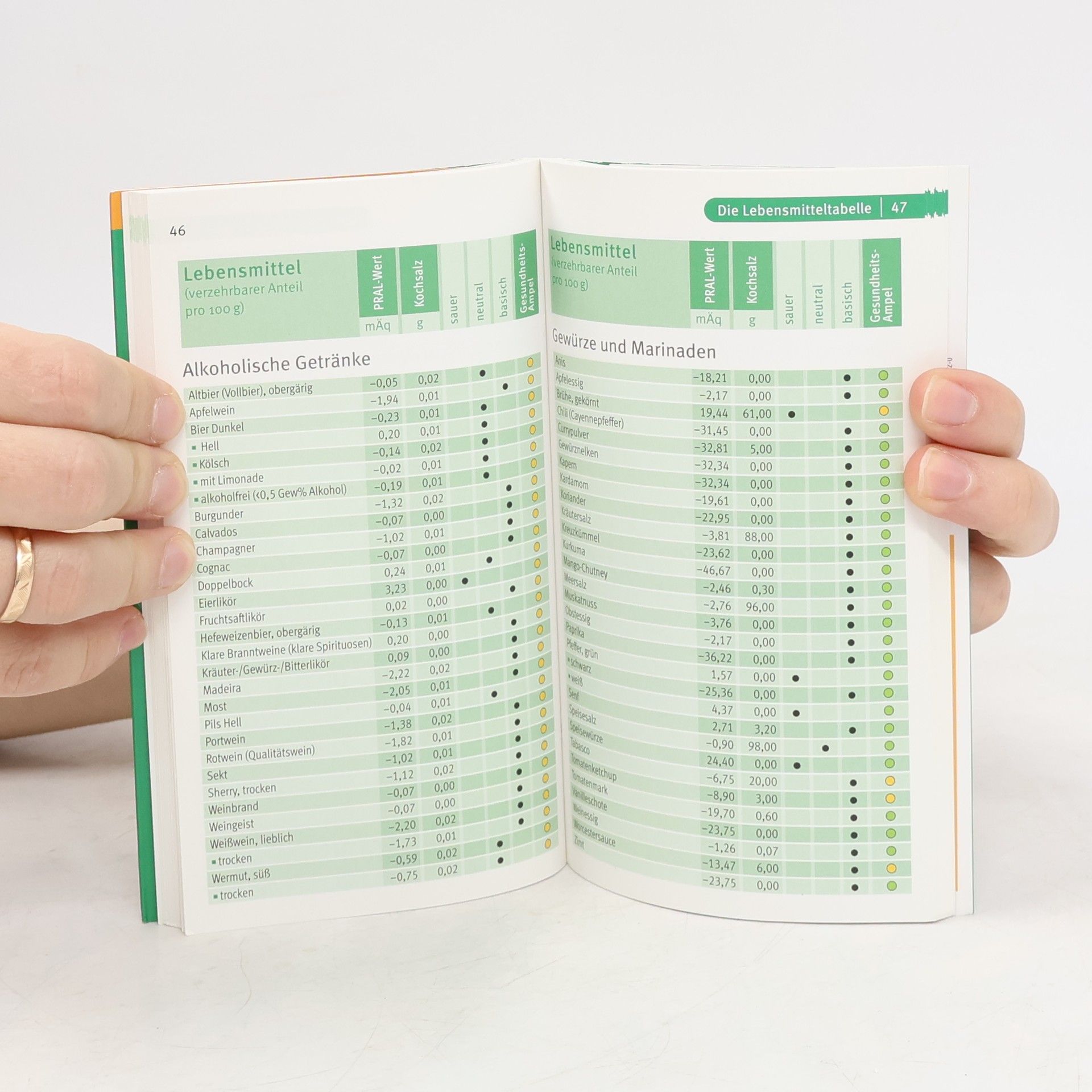 Dieser Kompass enthält alle wichtigen Informationen zum Thema Säure-Basen-Balance und ist das einzige Tabellenwerk mit den sogenannten PRAL-Werten. Mit dem PRAL-Wert lässt sich erstmals wissenschaftlich fundiert beschreiben, wie sauer oder basisch ein Lebensmittel ist. Denn sauer macht nicht lustig, sondern auf Dauer antriebslos und krank. Langfristig führt eine Übersäuerung beispielsweise zu einem erhöhten Risiko für Osteoporose, einer nachlassenden Elastizität des Bindegewebes oder einer herabgesetzten Stressresistenz. Nur wenn das Verhältnis von Säuren und Basen stimmt, fühlen wir uns gesund und leistungsfähig. Der Kern des Kompasses ist der Tabellenteil mit einer Auflistung von über 1.500 natürlichen Lebensmitteln, Fertiggerichten und typischen Fastfood-Gerichten. Man sieht auf einen Blick, ob ein Lebensmittel sauer, neutral oder basisch ist. Besonders praktisch: Mithilfe der beiliegenden pH-Wert-Streifen kann jeder leicht selbst feststellen, wie sein Körper auf Säuren reagiert.