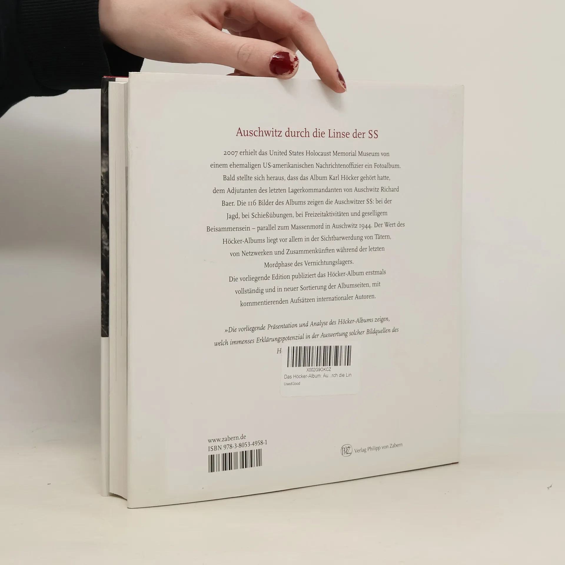 2007 erhielt das United States Holocaust Memorial Museum von einem ehemaligen Lieutenant Colonel der U. S. Army ein Fotoalbum, das dieser 1946 in Frankfurt ›gefunden‹ hatte. Das Album entpuppte sich schnell als Sensation. Denn es gehörte Karl Höcker, Adjutant des letzten Lagerkommandanten von Auschwitz, Richard Baer. Die 116 Bilder zeigen SS-Personal und Besucher: bei der Jagd, bei Schießübungen, bei Freizeitaktivitäten - parallel zum Massenmord in Auschwitz zwischen Juni 1944 und Januar 1945. Abgebildet sind u. a. Richard Baer, Rudolf Höß, Josef Kramer, Franz Hößler, Otto Moll und Josef Mengele. Die Bilder geben ganz neue Hinweise auf Verbindungen und Seilschaften der SS-Größen. Und sie zeigen Verantwortliche und Ausführende des Massenmords, die hier erstmals identifizierbar werden. Der vorliegende Band publiziert das Höcker-Album vollständig. Beiträge von neun internationalen Autoren erschließen das Album im Kontext der Zeit wie auch den Fall Höcker.