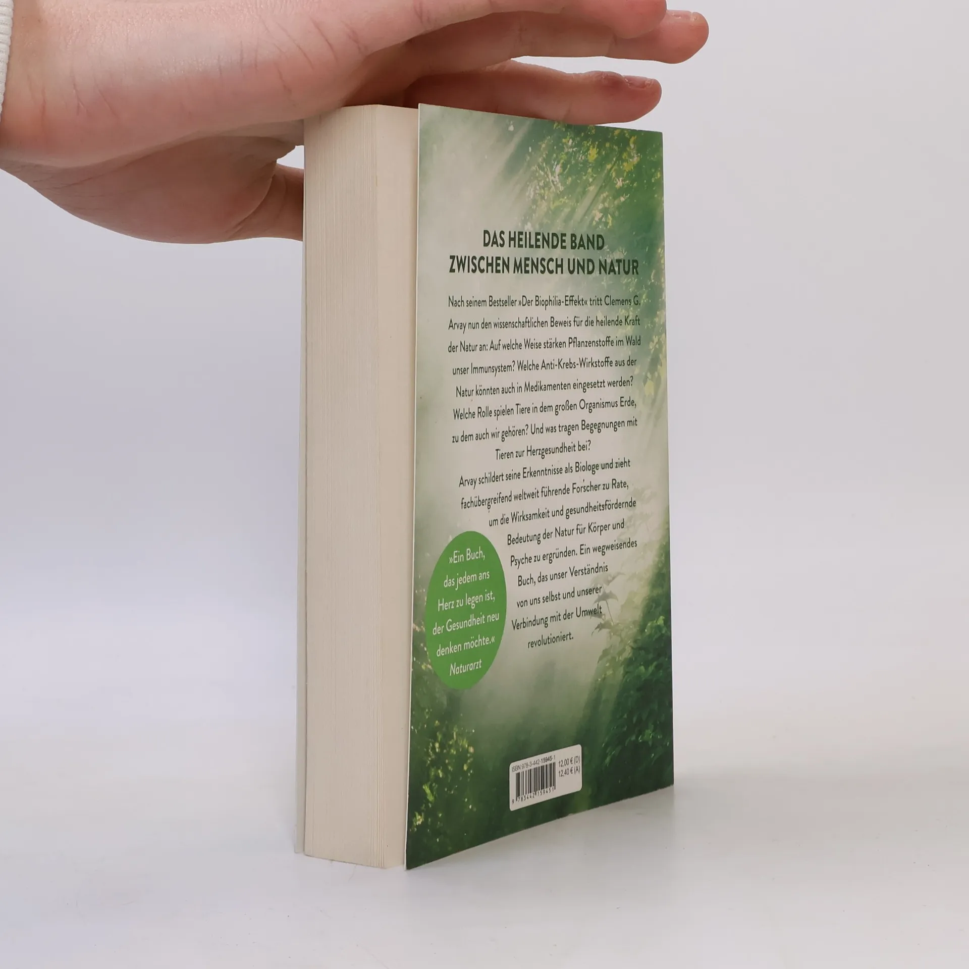 Die verborgenen Kräfte von Pflanzen und Tieren entdecken Unser Körper endet nicht an der Hautoberfläche: Mensch und Natur sind tiefgreifend miteinander verbunden. Nach seinem Bestseller »Der Biophilia-Effekt« tritt Clemens G. Arvay nun den wissenschaftlichen Beweis für die Heilkraft der Natur an: Auf welche Weise stärken Pflanzenstoffe im Wald unser Immunsystem? Welche Anti-Krebs-Wirkstoffe aus der Natur könnten auch in Medikamenten eingesetzt werden? Welche Rolle spielen Tiere in dem großen Organismus Erde, zu dem auch wir gehören? Und was tragen Begegnungen mit Tieren zur Herzgesundheit bei? Arvay schildert seine Erkenntnisse als Biologe und zieht weltweit führende Forscher zurate. So entwickelt er die neue Wissenschaft der Ökopsychosomatik, die unser Verständnis von uns selbst und unserer Verbindung mit der Umwelt revolutioniert.