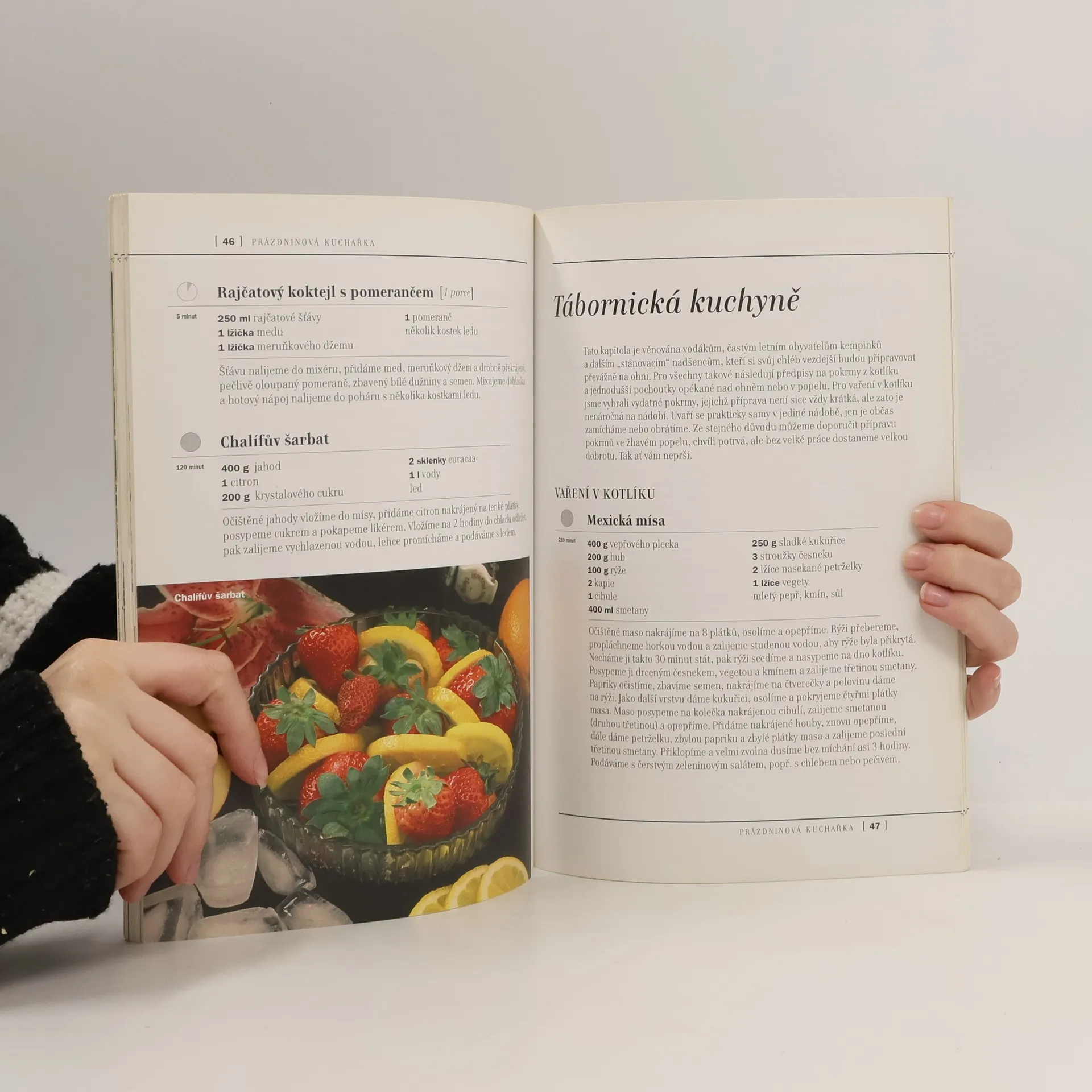 Kuchařka obsahuje předpisy na přípravu pokrmů vhodných při chvílích oddechu a odpočinku na chatách, chalupách, kempech či výletech. Poradí s přípravou pokrmů na zahradní párty pro dospělé i děti, včetně oblíbeného grilování, pomůže s výběrem občerstvení na pěší či cyklistické výlety a ukáže možnosti vaření v kotlíku a na otevřeném ohništi při táboření v kempu, na vodě apod