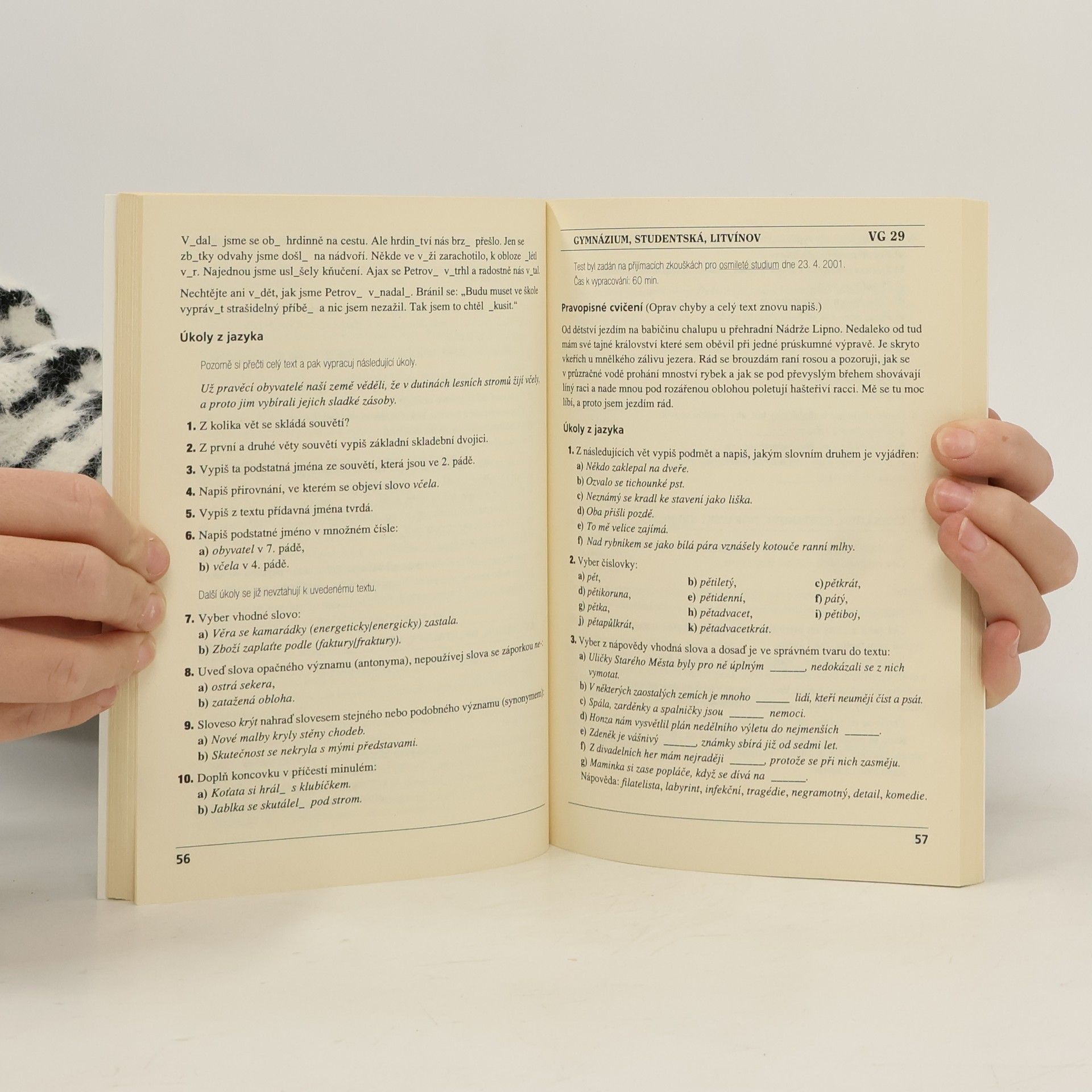 Testy z víceletých gymnázií 2002, Český jazyk