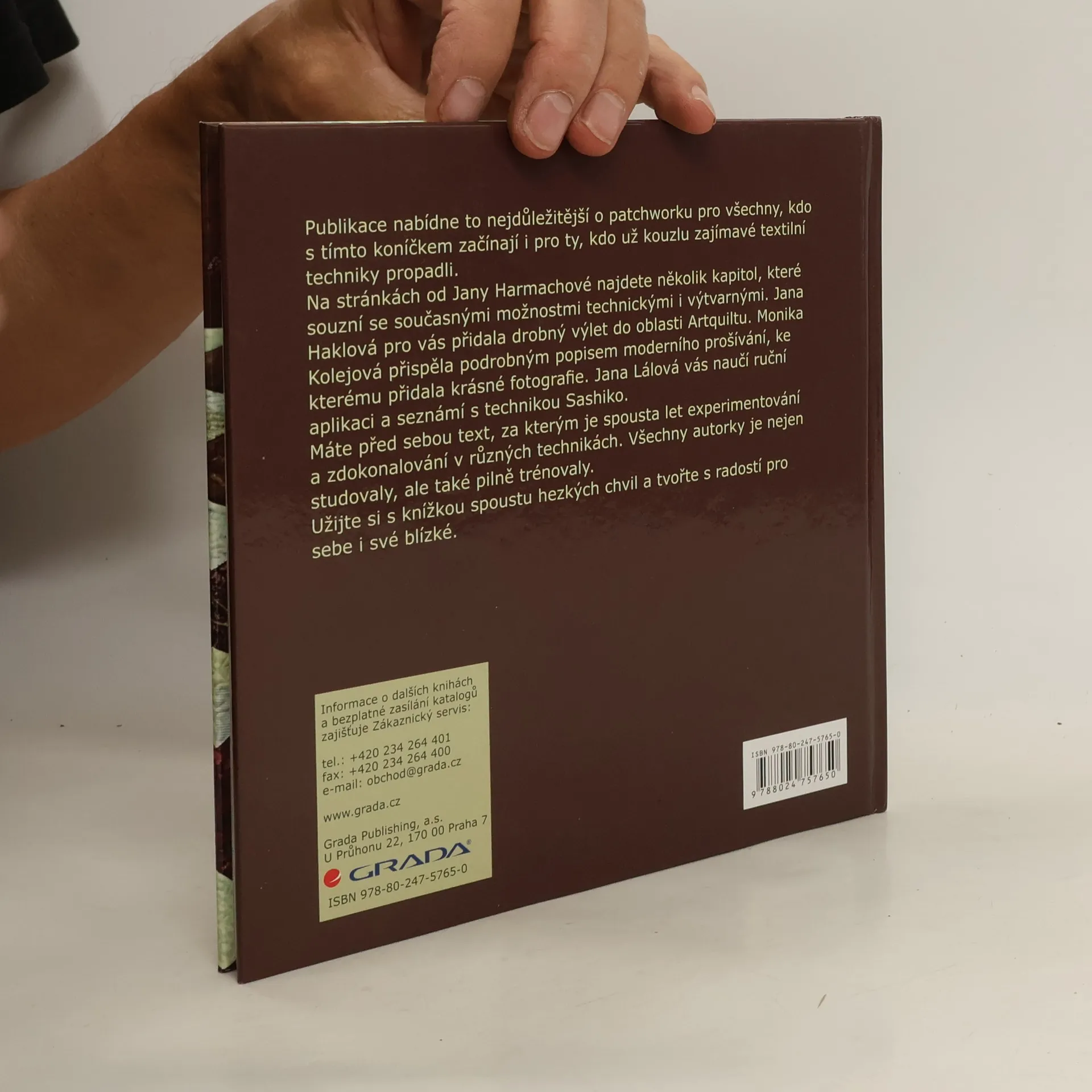 Publikace nabídne to nejdůležitější o patchworku pro všechny, kdo se s tímto koníčkem začínají, i pro ty, kdo už kouzlu zajímavé textilní techniky propadli. Na stránkách najdete několik kapitol, které souzní se současnými možnostmi technickými i výtvarnými. Jana Haklová pro vás přidala drobný výlet do oblasti artquiltu. Monika Kolejová přispěla podrobným popisem moderního quiltování včetně krásných fotografií. Jana Lálová vás naučí ruční aplikaci a seznámí s krásami techniky Sashiko. Máte před sebou text, za kterým je spousta let experimentování a zdokonalování v různých technikách, studium i pilné trénování. Užijte si s ním tedy spoustu hezkých chvil a tvořte s radostí pro sebe i své blízké.