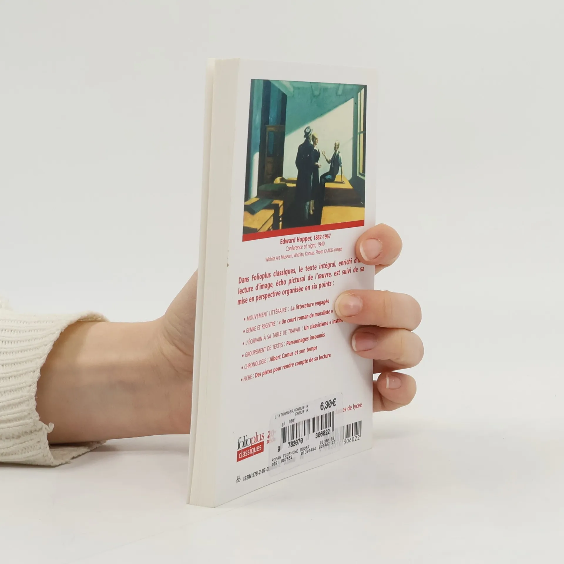 Dans Folioplus Classiques, le texte intégral, enrichi d'une lecture d'image, écho pictural de l'œuvre, est suivi de sa mise en perpective organisée en six points : Mouvement littéraire -La littérature engagée ; le genre et le registre -" Un court roman de moraliste " ; l'écrivain à sa table de travail -Un classicisme " instinctif " ; le groupement de textes -Personnages insoumis ; la chronologie -Albert Camus et son temps ; la fiche -Des pistes pour rendre compte de sa lecture.