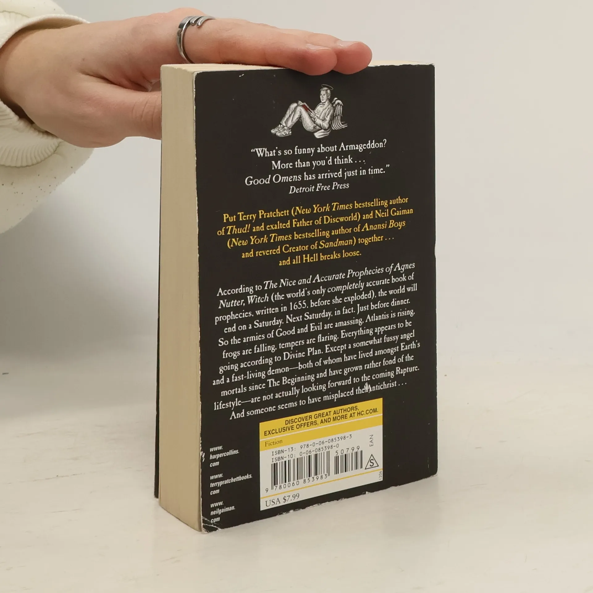 According to The Nice and Accurate Prophecies of Agnes Nutter, Witch (the world's only completely accurate book of prophecies, written in 1655, before she exploded), the world will end on a Saturday. Next Saturday, in fact. Just before dinner. So the armies of Good and Evil are amassing, Atlantis is rising, frogs are falling, tempers are flaring. Everything appears to be going according to Divine Plan. Except a somewhat fussy angel and a fast-living demon—both of whom have lived amongst Earth's mortals since The Beginning and have grown rather fond of the lifestyle—are not actually looking forward to the coming Rapture. And someone seems to have misplaced the Antichrist . . .