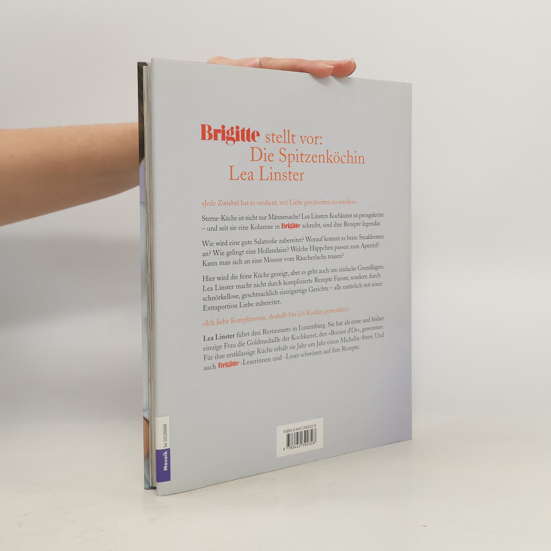 Wie macht man eine gute Soße, wie einen luftigen Hefeteig, wie gelingt ein knuspriges Huhn perfekt, welche Häppchen passen zum Apéritif - und schmecken Erdbeeren auch warm? Diese und viele andere Fragen beantwortet die Spitzenköchin Lea Linster in ihrem ersten Kochbuch. In einer einzigartigen Mischung aus Rezepten, kleinen Geschichten, Fotos und Hintergrundinformationen zeigt sie, wie man mit einfachen Zutaten das Beste kochen kann. Die sympathische Köchin, die als erste und bislang einzige Frau mit dem "Bocuse d'Or„ ausgezeichnet wurde, macht nicht durch komplizierte Rezepte Furore, sondern durch schnörkellose und geschmacklich hervorragende Gerichte - ganz nach ihrem Motto: “Eine Karotte muss bei mir nach Karotte schmecken.„Für ihr Buch “Einfach und genial„ erhielt Lea Linster die Auszeichnung “Bestes Deutsches Chef-Kochbuch„ im Rahmen der “Gourmand World Cookbook Awards". Ausstattung: 200 farbige Abbildungen