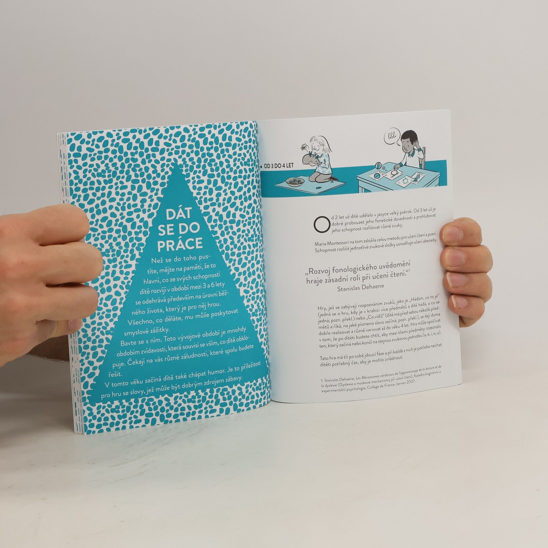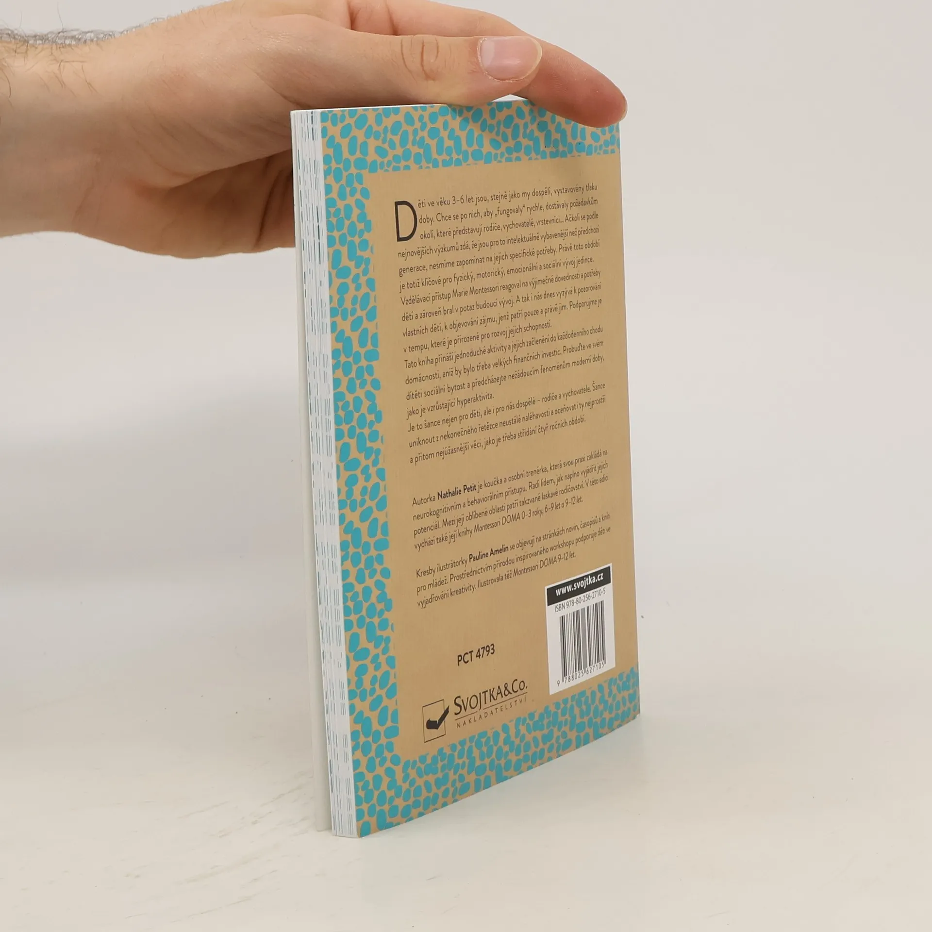 Děti ve věku 3-6 let jsou, stejně jako my dospělí, vystavovány tlaku doby. Chce se po nich, aby "fungovaly" rychle, dostávaly požadavkům okolí, které představují rodiče, vychovatelé, vrstevníci… Ačkoli se dle nejnovějších výzkumů zdá, že jsou pro to intelektuálně vybavenější než generace předchozí, nesmíme zapomínat na jejich specifické potřeby. Právě toto období je totiž klíčové pro fyzický, motorický, emocionální a sociální vývoj jedince. Vzdělávací přístup Marie Montessori na výjimečné dovednosti a potřeby dětí reagoval a zároveň bral v potaz budoucí vývoj. A tak i nás dnes vyzývá k pozorování vlastních dětí, k objevování zájmu, jež patří pouze a právě jim. Podporujme je v tempu přirozeném pro rozvoj jejich schopností. Jednoduché aktivity, jejich začlenění do každodenního chodu domácnosti bez nutnosti velkých finančních investic - to přináší tato kniha. Probuďte ve svém dítěti sociální bytost a předcházejte nežádoucím fenoménům moderní doby, jako je vzrůstající hyperaktivita. Je to šance nejen pro děti, ale i pro nás dospělé - rodiče a vychovatele. Šance uniknout z nekonečného řetězce neustálé naléhavost a oceňovat i ty nejprostší a přitom nejúžasnější věci, jako je třeba střídání čtyř ročních období.