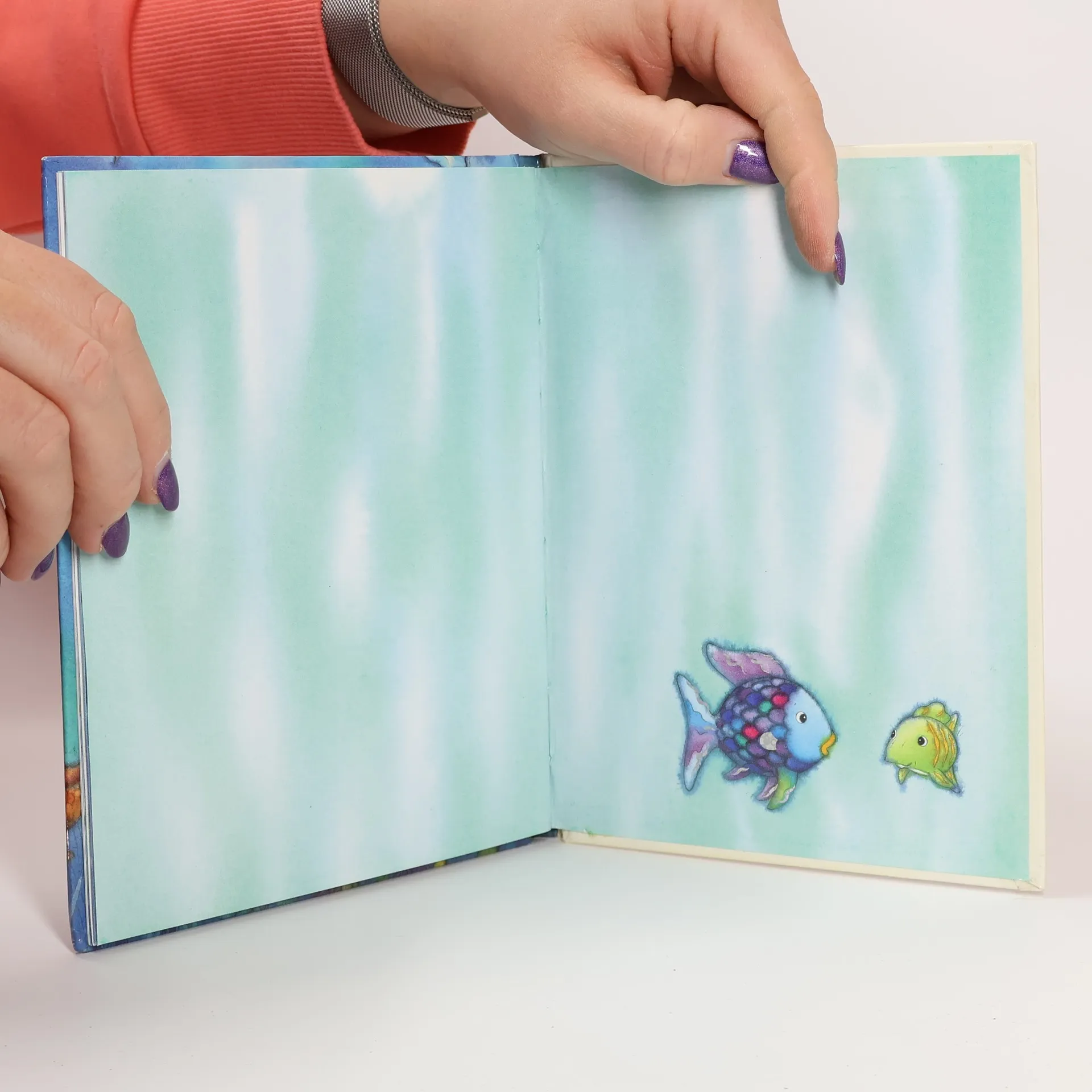 Der Regenbogenfisch ist mit seinem schillernden Schuppenkleid der allerschönste Fisch im ganzen Ozean. Da er aber auch eitel und stolz ist, wird er mit der Zeit immer einsamer. Da merkt er, dass man Freunde nicht durch Schönheit gewinnen kann. Er überwindet seinen Stolz und beginnt, seine Glitzerschuppen an die anderen Fische zu verteilen.