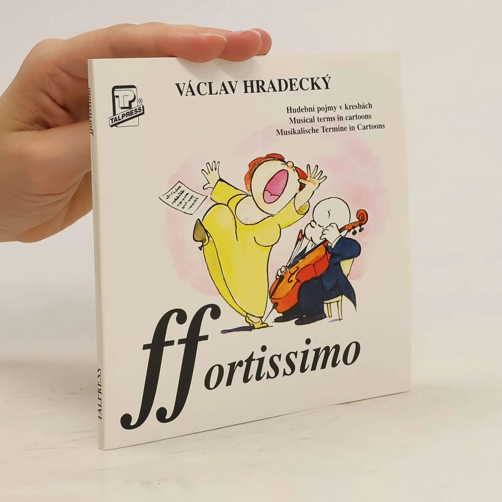 Hudební pojmy ve vtipných kresbách kreslíře, malíře, violisty Václava Hradeckého. Na obálce je v názvu knihy zakomponována hudební značka pro fortissimo - ff. Pod kresbami jsou v knize souběžně italské, české, anglické a německé vysvětlivky.