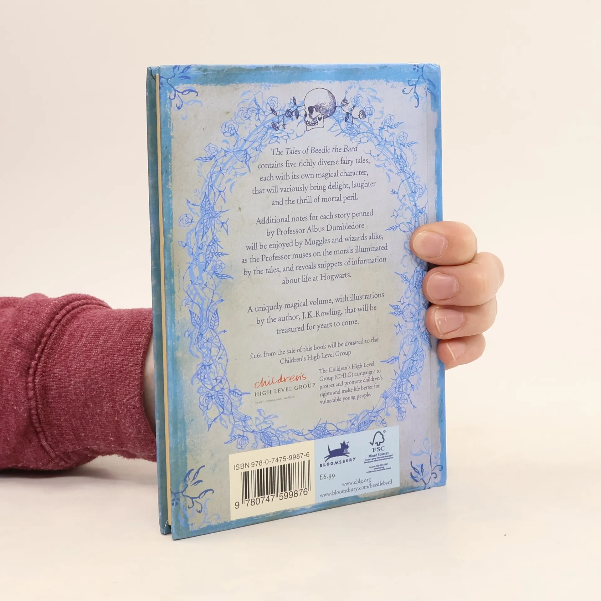 The Tales of Beedle the Bard contains five richly diverse fairy tales, each with its own magical character, that will variously bring delight, laughter and the thrill of mortal peril. Additional notes for each story penned by Professor Albus Dumbledore will be enjoyed by Muggles and wizards alike, as the Professor muses on the morals illuminated by the tales, and reveals snippets of information about life at Hogwarts. A uniquely magical volume, with illustrations by the author, J. K. Rowling, that will be treasured for years to come.