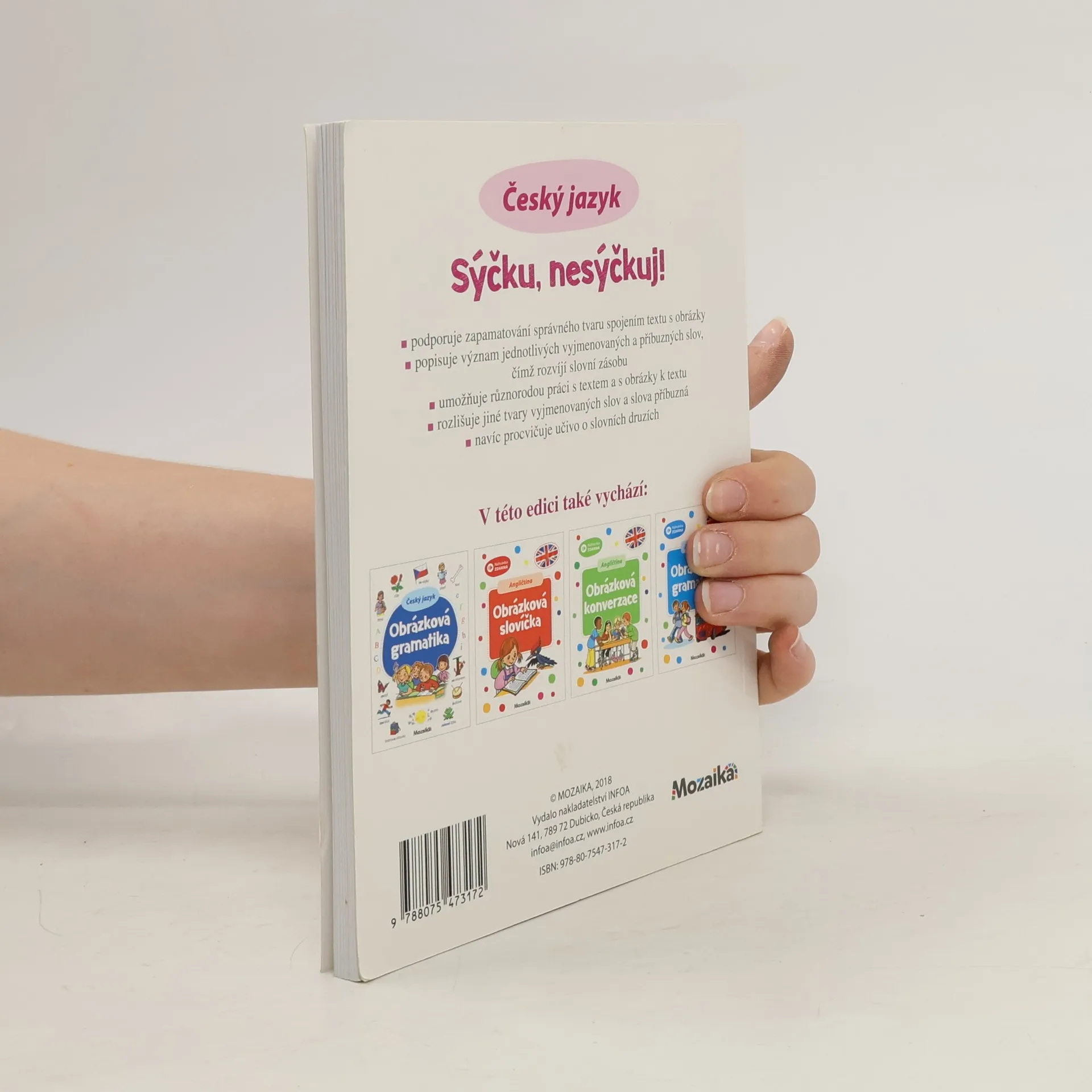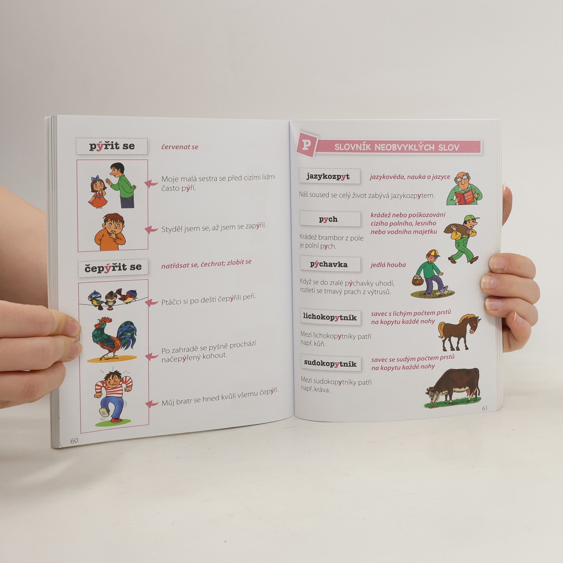 Obrázkový slovník vyjmenovaných a příbuzných slov. Tato kniha podporuje zapamatování správného tvaru spojením textu s obrázky, popisuje význam jednotlivých vyjmenovaných a příbuzných slov, čímž rozvíjí slovní zásobu. Umožňuje různorodou práci s textem a s obrázky k textu. Rozlišuje jiné tvary vyjmenovaných slov a slova příbuzná, A navíc procvučuje učivo o slovních druzích.