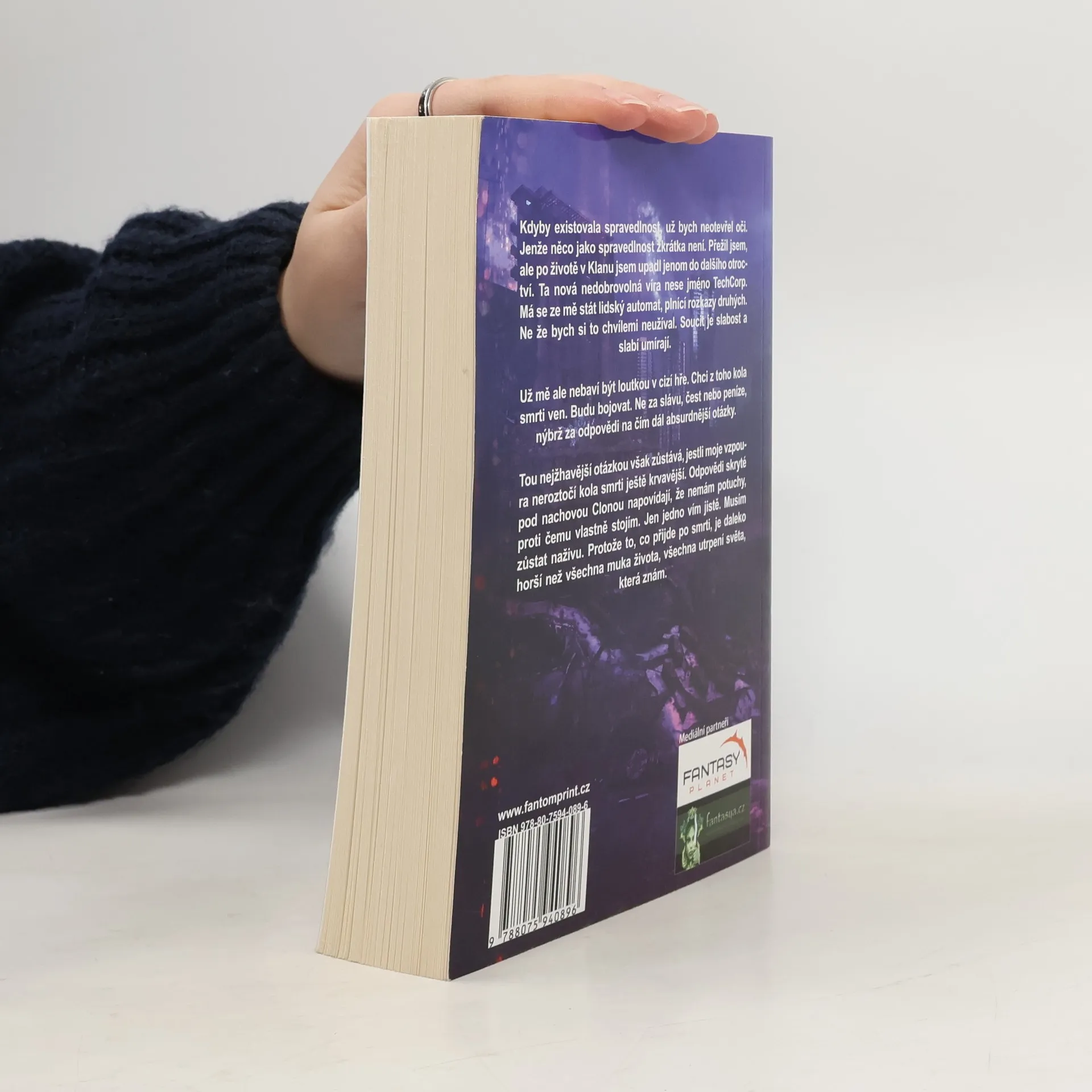Kdyby existovala spravedlnost, už bych neotevřel oči. Jenže něco jako spravedlnost zkrátka není. Přežil jsem, ale po životě v Klanu jsem upadl jenom do dalšího otroctví. Ta nová nedobrovolná víra nese jméno TechCorp. Má se ze mě stát lidský automat, plnící rozkazy druhých. Ne že bych si to chvílemi neužíval. Soucit je slabost a slabí umírají. Už mě ale nebaví být loutkou v cizí hře. Chci z toho kola smrti ven. Budu bojovat. Ne za slávu, čest nebo peníze, nýbrž za odpovědi na čím dál absurdnější otázky. Tou nejžhavější otázkou však zůstává, jestli moje vzpoura neroztočí kola smrti ještě krvavější. Odpovědi skryté pod nachovou Clonou napovídají, že nemám potuchy, proti čemu vlastně stojím. Jen jedno vím jistě. Musím zůstat naživu. Protože to, co přijde po smrti, je daleko horší než všechna muka života, všechna utrpení světa, který znám.