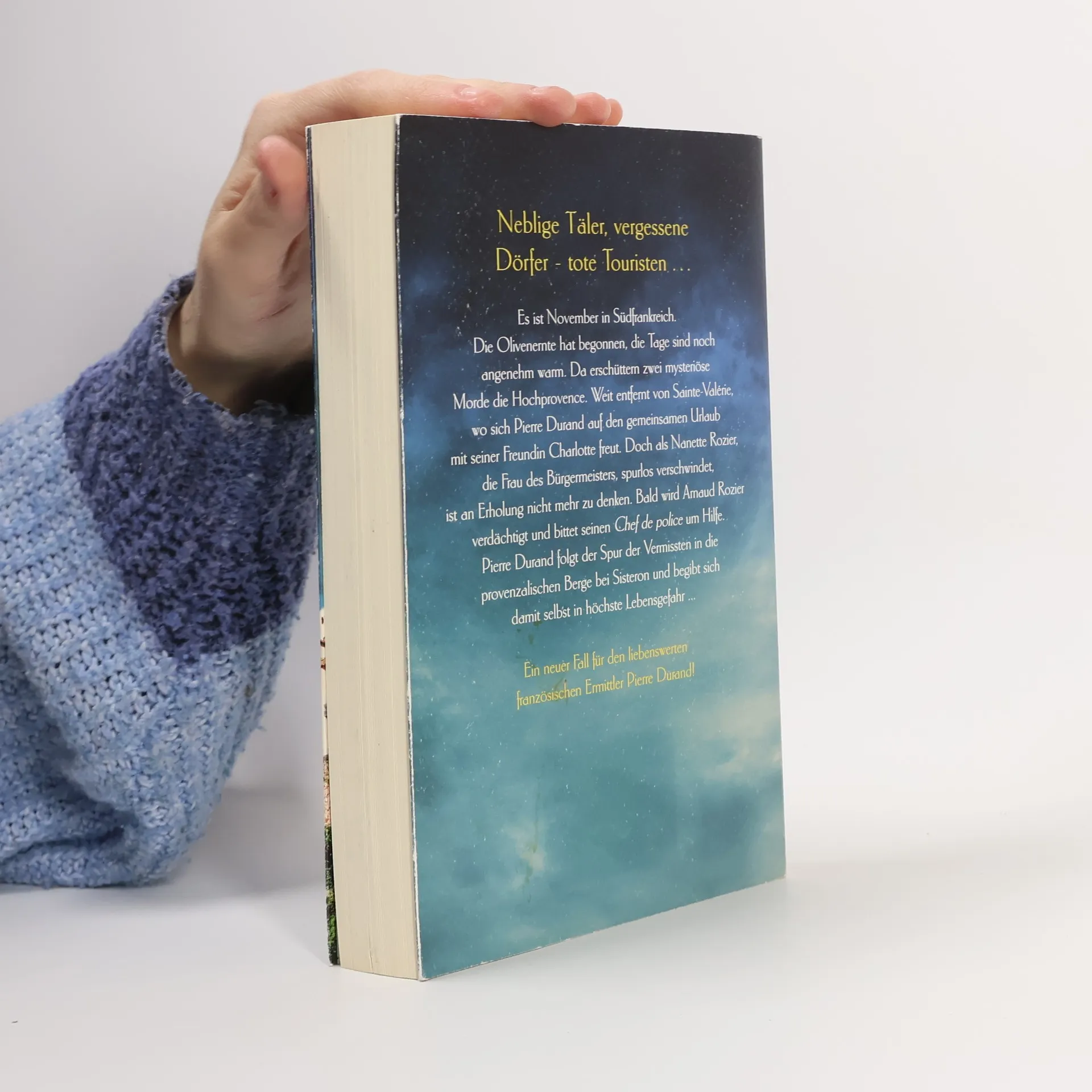 Neblige Täler, vergessene Dörfer – tote Touristen … Es ist November in Südfrankreich. Die Olivenernte hat begonnen, die Tage sind noch angenehm warm. Da erschüttern zwei mysteriöse Morde die Hochprovence. Weit entfernt von Sainte-Valérie, wo sich Pierre Durand auf den gemeinsamen Urlaub mit seiner Freundin Charlotte freut. Doch als Nanette Rozier, die Frau des Bürgermeisters, spurlos verschwindet, ist an Erholung nicht mehr zu denken. Bald wird Arnaud Rozier verdächtigt und bittet seinen Chef de police um Hilfe. Pierre Durand folgt der Spur der Vermissten in die provenzalischen Berge bei Sisteron und begibt sich damit selbst in höchste Lebensgefahr ...