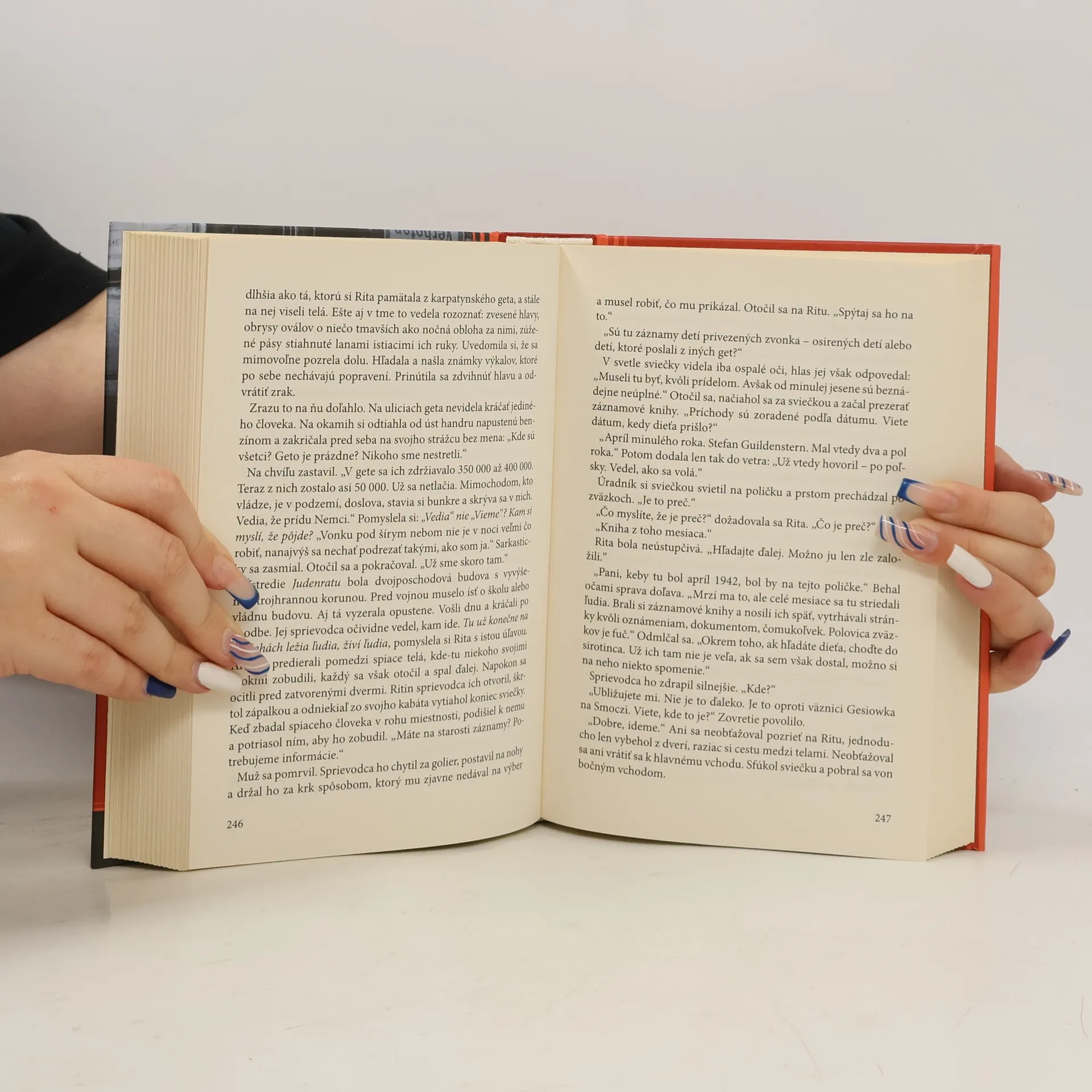 V roku 1935 prichádza Rita Feuerstahlová na univerzitu do Krakova,kde plánuje študovať a užívať si život. No osud má s ňou úplne iné plány: manželstvo, milostný pomer, dieťa- to všetko tesne pred začiatkom druhej svetovej vojny. Po vypuknutí vojny židovsku Ritu presídlia do geta,kde sa každodennosť mení na sústavný boj o prežitie. Napokon utečie a získa falošné doklady,no nemá žiadne správy o svojom odvedenom synovi,a tak stráca chuť žiť. Jej život medzi Nemcami je čoraz ohrozenejší a Rita sa môže stať jednou z ich posledných obetí. Odolá jej túžba nájsť syna aj tomu najväčšiemu zlu, aké kedy Európa videla? Epická sága vás prenesie do Paríža tridsiatich rokov,do Španielska v období občianskej vojny,ako aj do Moskvy, Varšavy,a napokon do samotného srdca nacistického Nemecka,kde sa jedna žena a jej dvaja muži- manžel a milenec- ocitajú v boji,v ktorom celé národy balansujú na pokraji skazy.