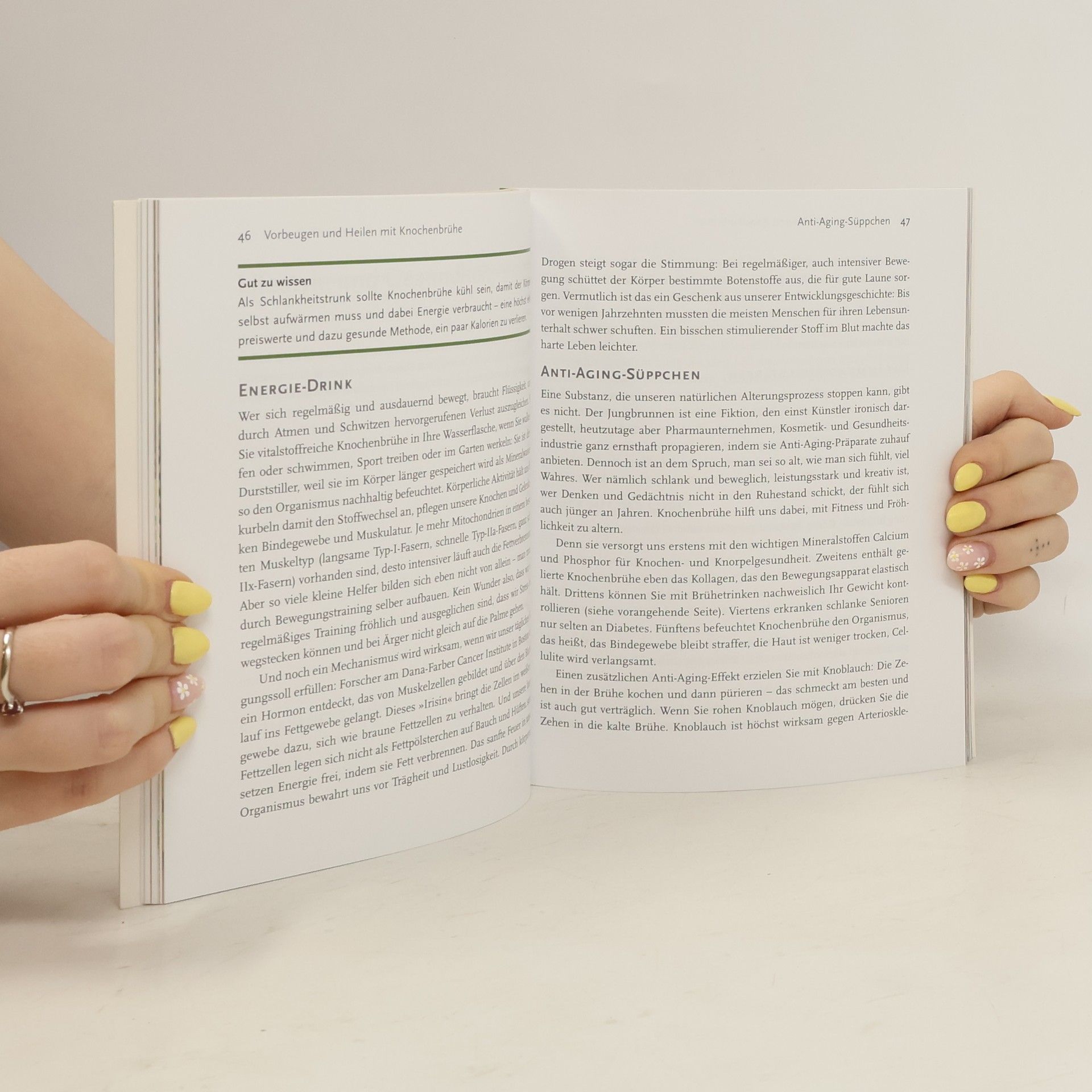 Die Wiederentdeckung der Knochenbrühe zeigt, wie die traditionelle Wundersuppe unserer Vorfahren für schmackhafte Gerichte, Gesundheit und Wohlbefinden sorgt. Diese leicht verdauliche Brühe, die bis in die Steinzeit zurückreicht, liefert schnell verfügbare Energie und ist ein hervorragender Proteinlieferant. Sie enthält Gelatine und Kollagen, die bei Cellulite, Gelenkentzündungen und für straffere Haut, glänzende Haare sowie feste Nägel von Vorteil sind. Mit geringem Kalorien- und Kohlenhydratgehalt bietet die Brühe Keratin, Vitamine und wertvolle Mineralien, stärkt Gedächtnisfunktionen, fördert erholsamen Schlaf und aktiviert das Immunsystem. Wissenschaftliche Studien bestätigen die positiven Effekte der Knochenbrühe auf Gesundheit und Aussehen und zeigen, dass sie den Alterungsprozess verlangsamen kann. Das Kapitel Grundrezepte erklärt, wie man die Brühe selbst zubereitet, während der Rezeptteil vielfältige Anregungen für schmackhafte Gerichte bietet. Ein spezielles Kapitel widmet sich den heilenden Wirkungen der Brühe bei besonderen Bedürfnissen und Krankheiten, kombiniert mit weiteren heilenden Nahrungsmitteln und Superfoods. Dazu gehören ein Energiedrink für Leistungsfähigkeit, ein Anti-Aging-Süppchen, ein Liebestrunk zur Förderung der Durchblutung sowie eine Suppe zur Stärkung des Immunsystems bei Erkältungen und Entzündungen. Die Knochenbrühe ist somit eine vielseitige Unterstützung für Gesundheit, Schönheit und Wohlb