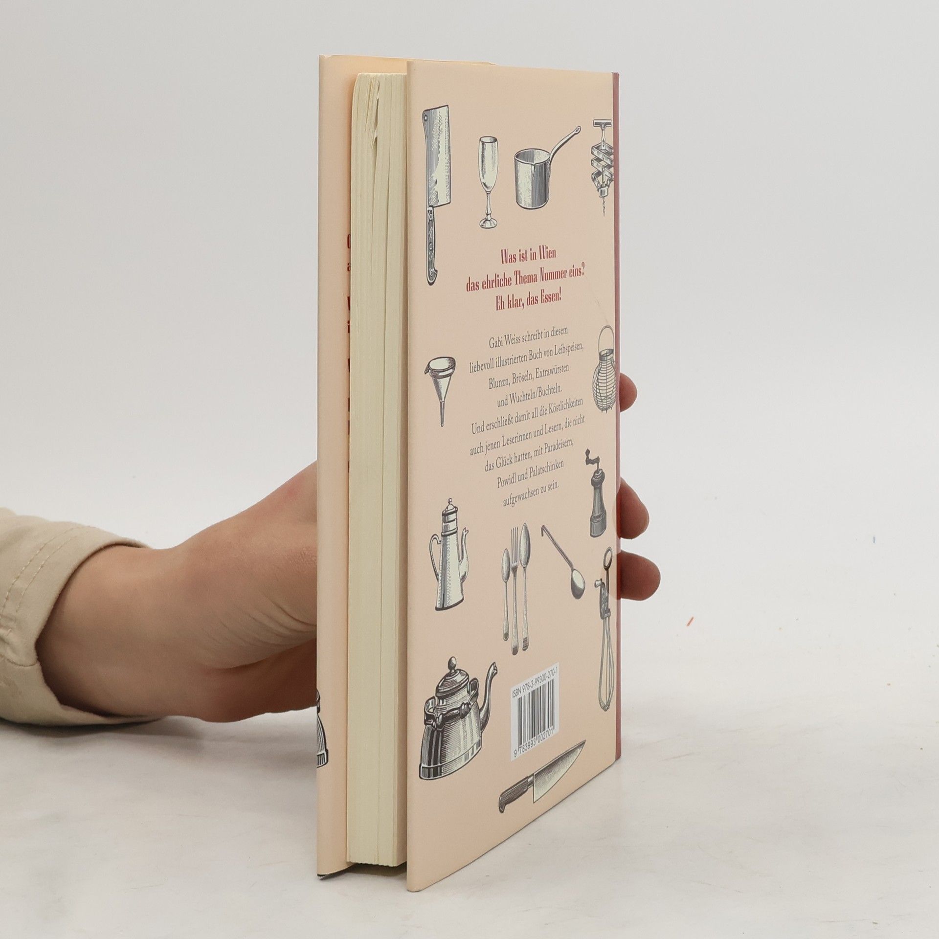 Was ist in Wien das ehrliche Thema Nummer eins? Eh klar, das Essen! Und da sich um so gut wie jede Speise der Wiener Küche Anekdoten und Geheimnisse ranken, gibt es viel zu erzählen und weiterzuerzählen. Gabi Weiss schreibt in diesem liebevoll illustrierten Buch von Leibspeisen, Blunzen, Bröseln, Extrawürsten und Wuchteln/Buchteln. Und erschließt damit all die Köstlichkeiten auch jenen Leserinnen und Lesern, die nicht das Glück hatten, mit Paradeisern, Powidl und Palatschinken aufgewachsen zu sein.