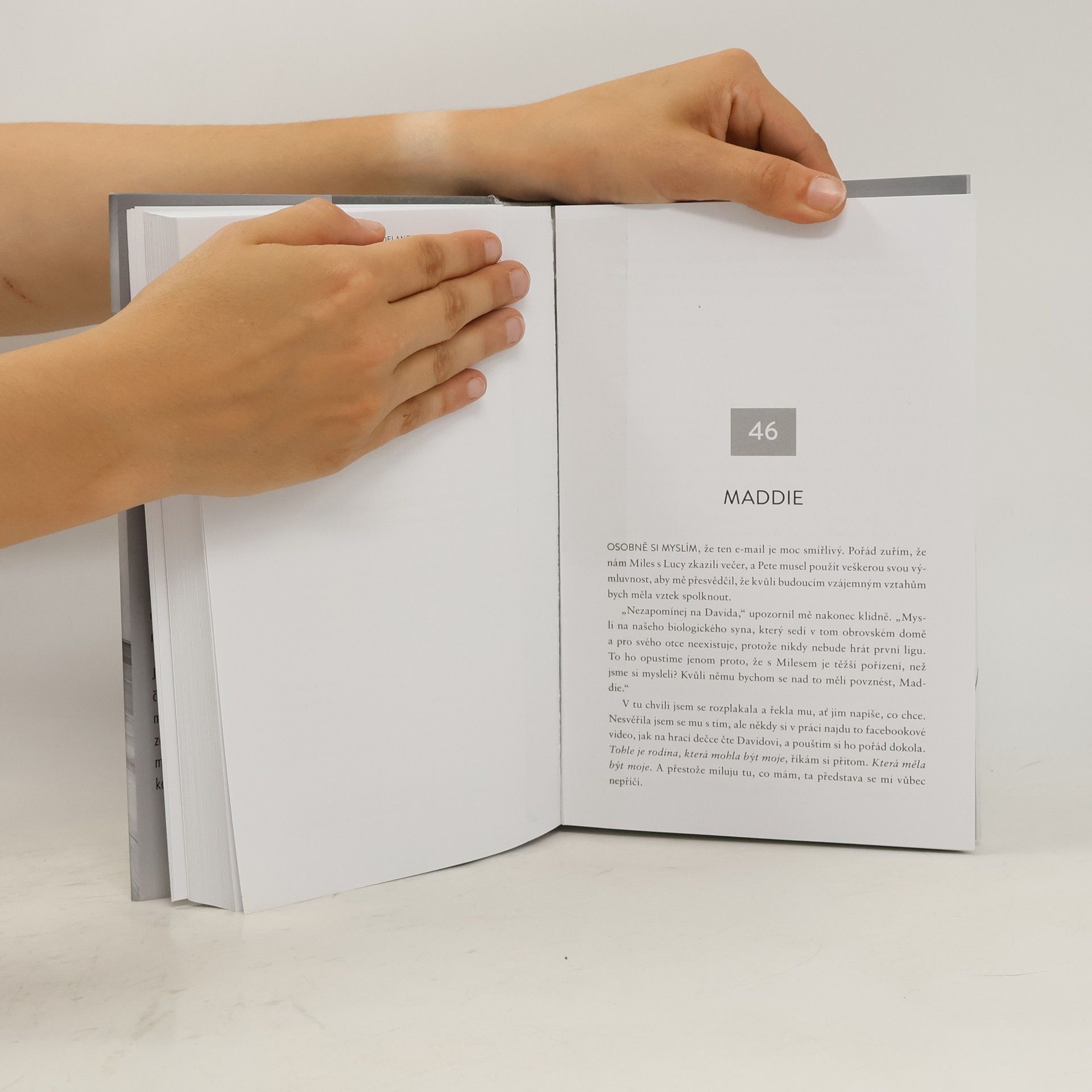 Jednou ráno otevře Pete Riley dveře cizímu člověku a uslyší zprávu, která jemu i jeho partnerce Maddie promění život v noční můru. Dozvědí se totiž, že jejich syn byl v porodnici omylem zaměněn a už dva roky vychovávají cizí dítě… Zatím poslední psychologický thriller bestsellerové autora Té přede mnou nebo Dokonalé manželky se dotýká otázek souvisejících s rodičovstvím, vztahy a především s morálkou: Projevuji dítěti dost lásky a dokáži správnou výchovou ovlivnit jeho vrozené vlastnosti? Mohu partnerovi za všech okolností a ve všem věřit? A především: mám právo chovat se k druhým, jako se oni chovají ke mně, a zlo oplácet zlem?