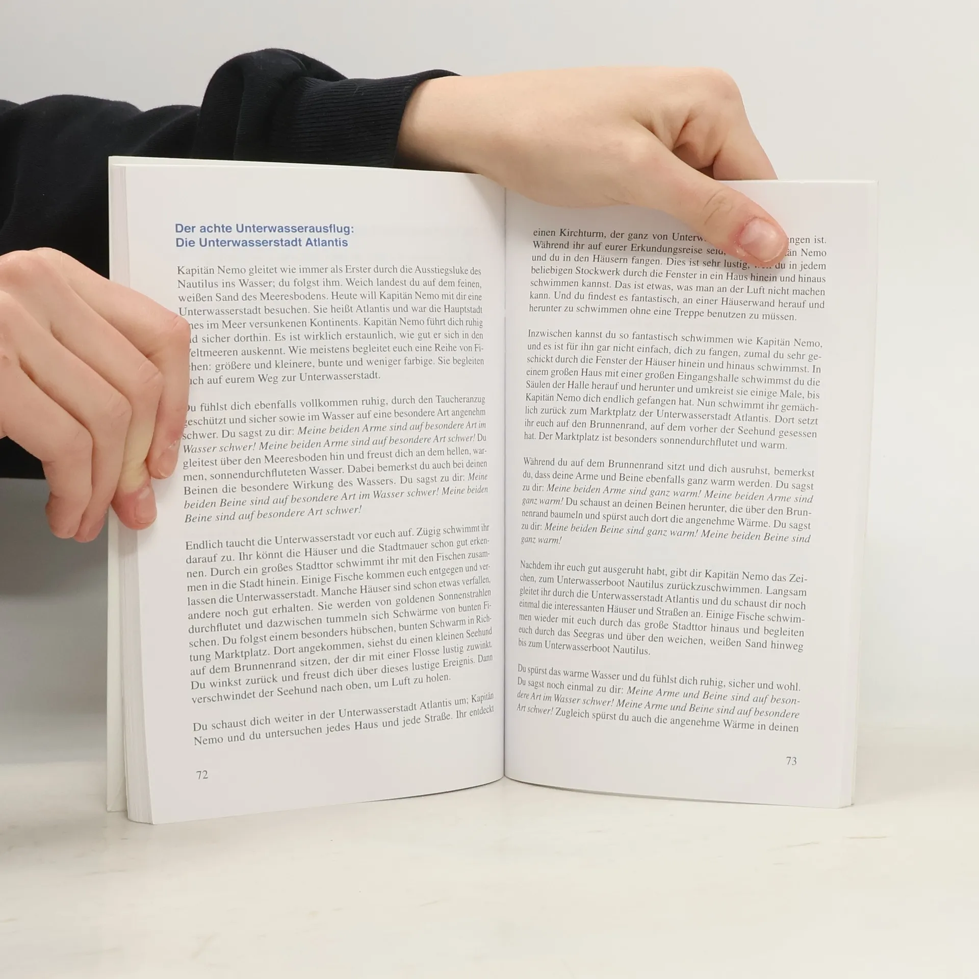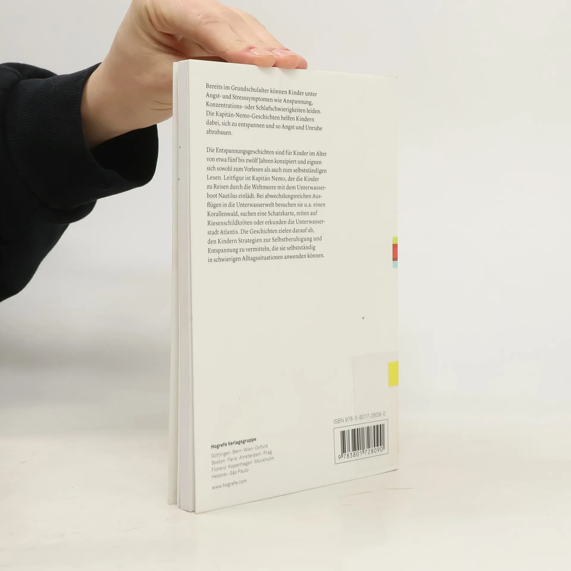 Bereits im Grundschulalter können Kinder unter Angst- und Stresssymptomen wie Anspannung, Konzentrations- oder Schlafschwierigkeiten leiden. Die Kapitän-Nemo-Geschichten helfen Kindern dabei, sich zu entspannen und so Angst und Unruhe abzubauen. Die Entspannungsgeschichten sind für Kinder im Alter von etwa fünf bis zwölf Jahren konzipiert und eignen sich sowohl zum Vorlesen als auch zum selbstständigen Lesen. Leitfigur ist Kapitän Nemo, der die Kinder zu Reisen durch die Weltmeere mit dem Unterwasserboot Nautilus einlädt. Bei abwechslungsreichen Ausflügen in die Unterwasserwelt besuchen sie u. a. einen Korallenwald, suchen eine Schatzkarte, reiten auf Riesenschildkröten oder erkunden die Unterwasserstadt Atlantis. Die Geschichten zielen darauf ab, den Kindern Strategien zur Selbstberuhigung und Entspannung zu vermitteln, die sie selbstständig in schwierigen Alltagssituationen anwenden können. Jede Geschichte ist 10-15 Minuten lang.