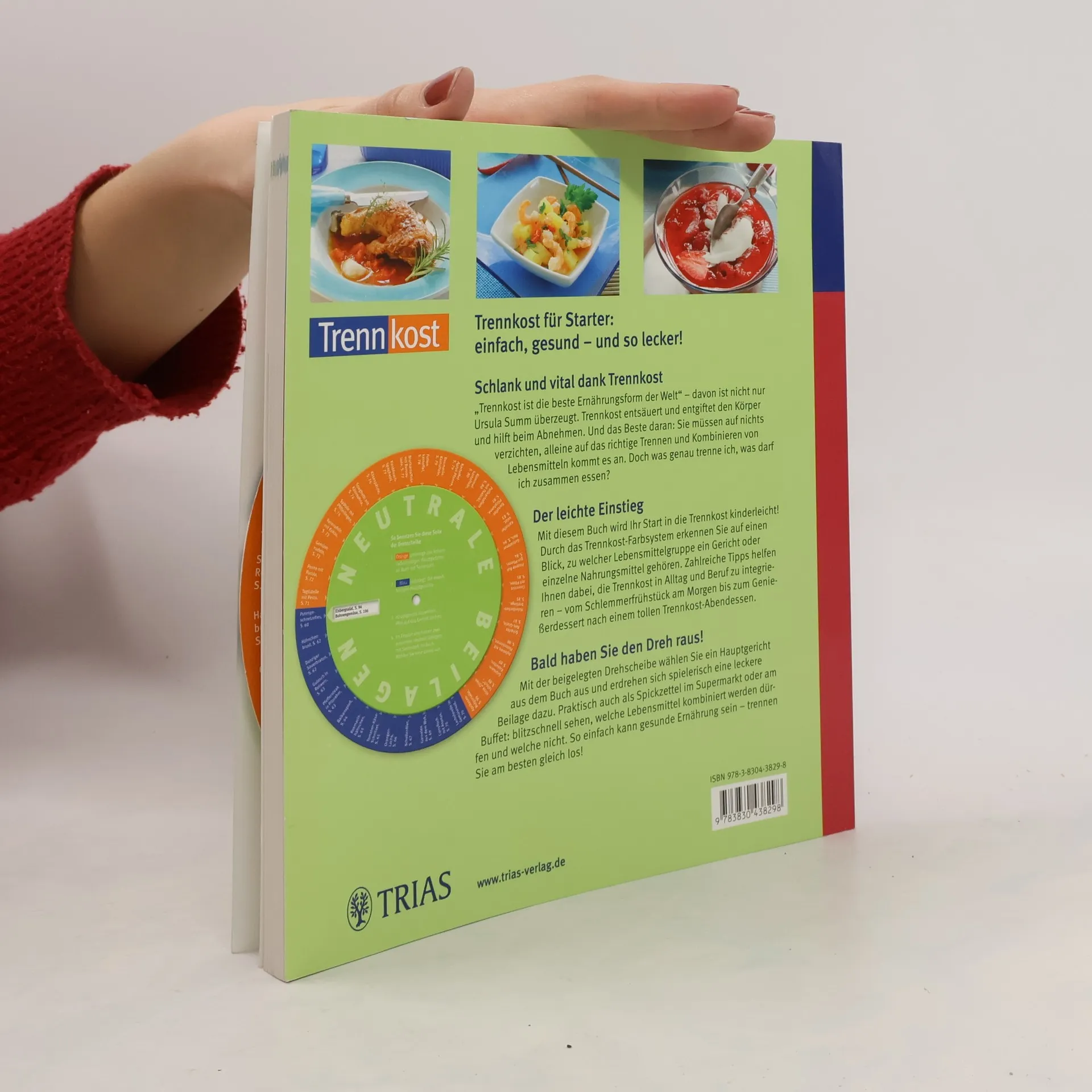 Trennkost für Starter: einfach, gesund - und so lecker! Schlank und vital dank Trennkost „Trennkost ist die beste Ernährungsform der Welt“ - davon ist nicht nur Ursula Summ überzeugt. Trennkost entsäuert und entgiftet den Körper und hilft beim Abnehmen. Und das Beste daran: Sie müssen auf nichts verzichten, alleine auf das richtige Trennen und Kombinieren von Lebensmitteln kommt es an. Doch was genau trenne ich, was darf ich zusammen essen? Der leichte Einstieg Mit diesem Buch wird Ihr Start in die Trennkost kinderleicht! Durch das Trennkost-Farbsystem erkennen Sie auf einen Blick, zu welcher Lebensmittelgruppe ein Gericht oder einzelne Nahrungsmittel gehören. Zahlreiche Tipps helfen Ihnen dabei, die Trennkost in Alltag und Beruf zu integrieren - vom Schlemmerfrühstück am Morgen bis zum Genießerdessert nach einem tollen Trennkost-Abendessen. Bald haben Sie den Dreh raus! Mit der beigelegten Drehscheibe wählen Sie ein Hauptgericht aus dem Buch aus und erdrehen sich spielerisch eine leckere Beilage dazu. Praktisch auch als Spickzettel im Supermarkt oder am Buffet: blitzschnell sehen, welche Lebensmittel kombiniert werden dürfen und welche nicht. So einfach kann gesunde Ernährung sein - trennen Sie am besten gleich los!