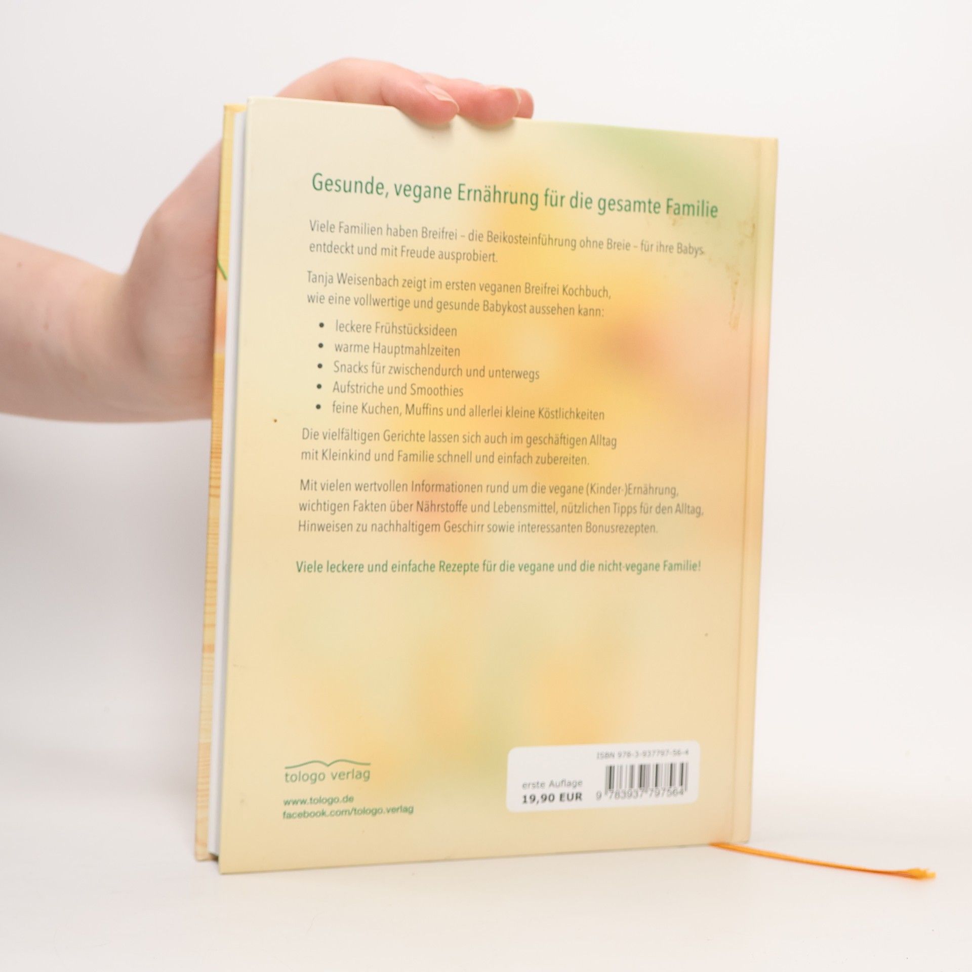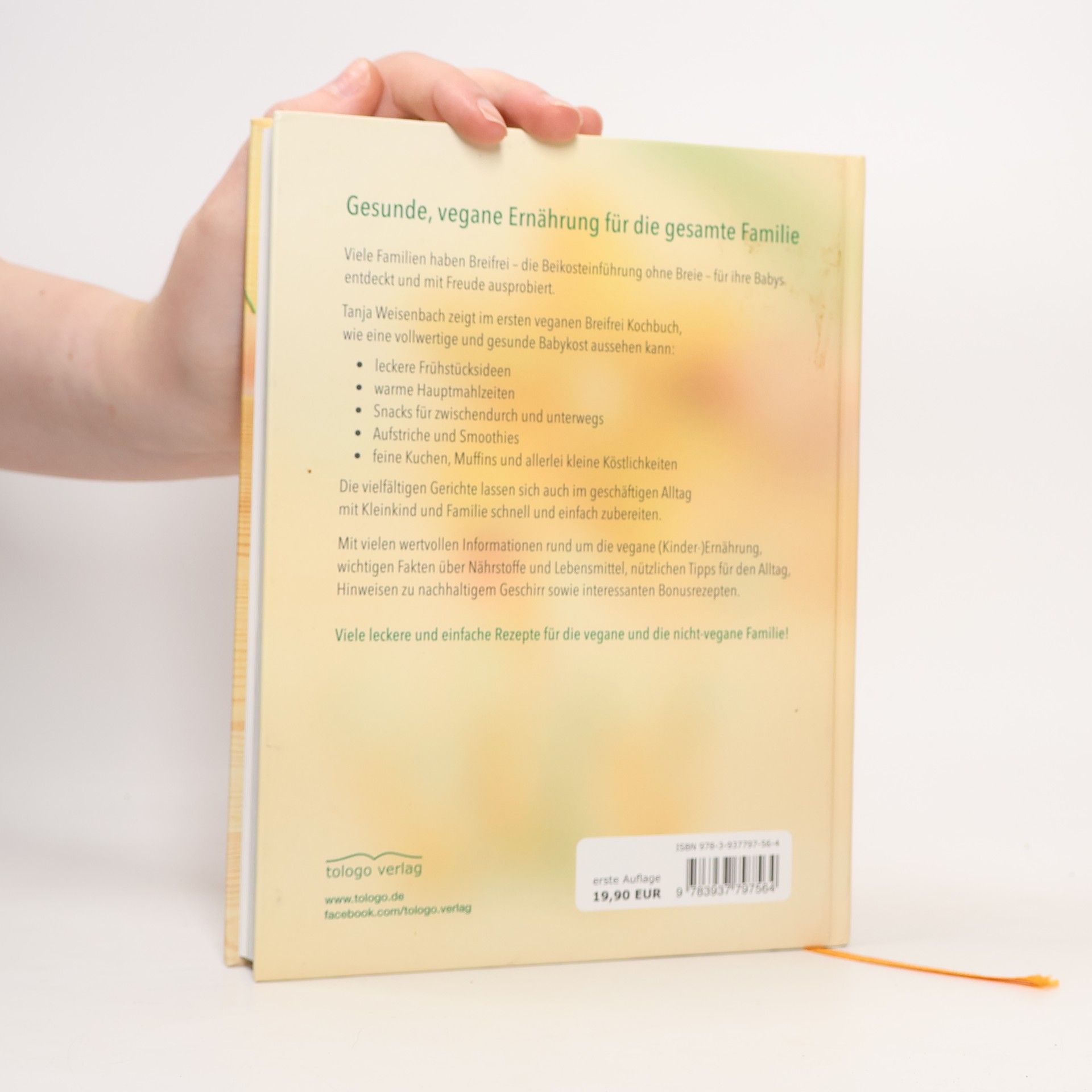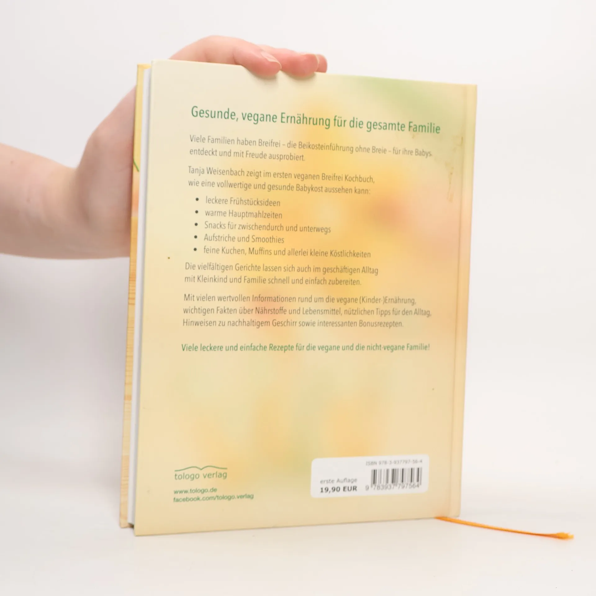 Gesunde, vegane Ernährung für die gesamte Familie Viele Familien haben Breifrei – die Beikosteinführung ohne Breie – für ihre Babys entdeckt und mit Freude ausprobiert. Tanja Weisenbach zeigt im ersten veganen Breifrei Kochbuch: unkomplizierte Gerichte mit gängigen Zutaten alle Nährstoffe abdeckend, die Babys und Kleinkinder benötigen teilweise rohvegan und glutenfrei Die vielfältigen Gerichte lassen sich auch im geschäftigen Alltag mit Kleinkind und Familie schnell und einfach zubereiten. Rezepte, Informationen und Tipps Dieses Buch beinhaltet alles, was eine vollwertige und gesunde Babykost ausmachen sollte: leckere Frühstücksideen warme Hauptmahlzeiten Snacks für zwischendurch und unterwegs Aufstriche und Smoothies feine Kuchen, Muffins und allerlei kleine Köstlichkeiten Mit vielen wertvollen Infos rund um die vegane (Kinder-)Ernährung, wichtigen Fakten über Nährstoffe und Lebensmittel, nützlichen Tipps für den Alltag, Hinweisen zu nachhaltigem Geschirr sowie interessanten Bonusrezepten. Alle Rezepte sind farbig bebildert. Viele leckere und einfache Rezepte für die vegane und die nicht-vegane Familie!