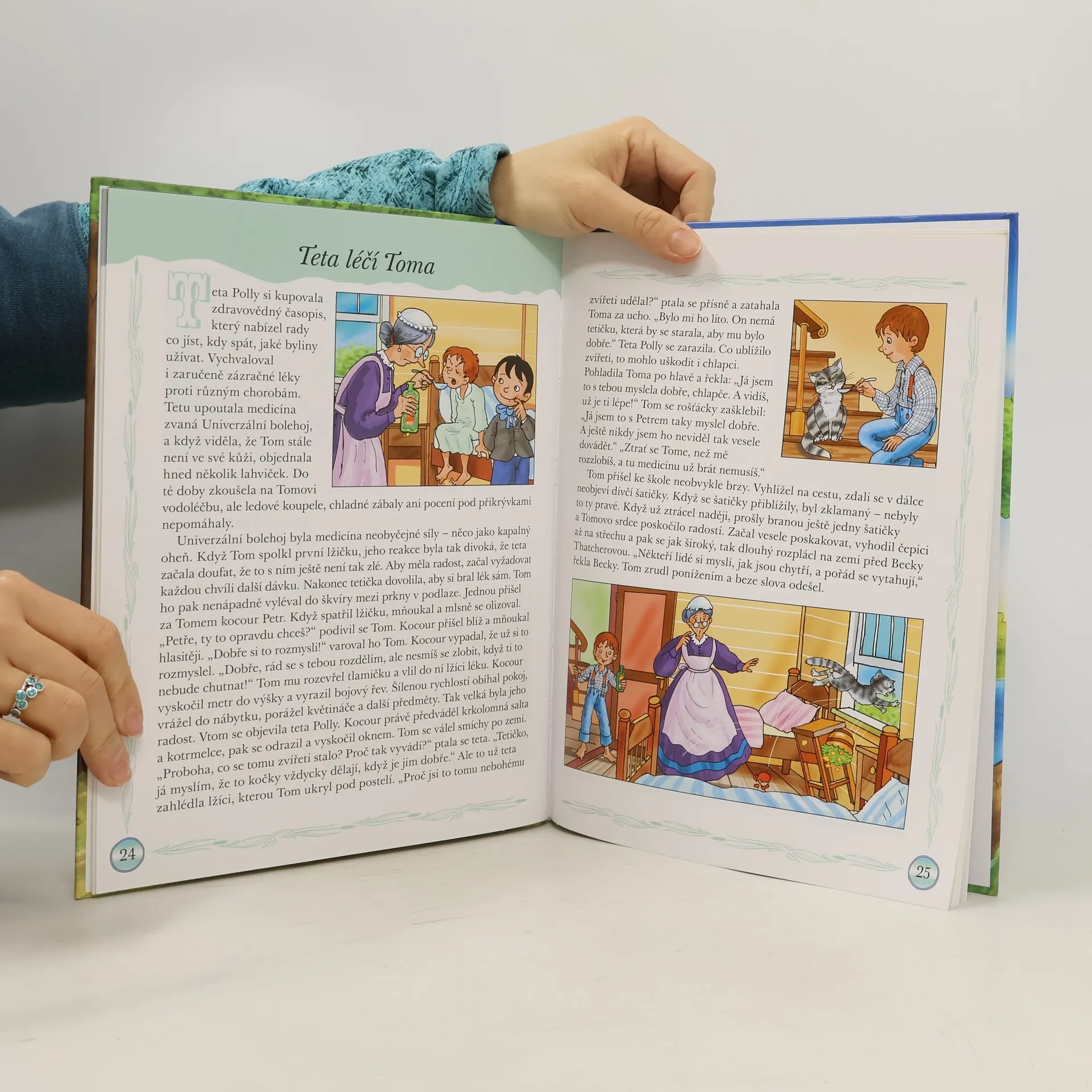 Jmenuji se Tom Sawyer a bydlím u své tety v malém městečku na řece Mississippi. Přiznám se, že nerad chodím do školy a vyhýbám se práci. Nejradši bych trávil veškerý čas se svými kamarády Huckem a Joeem. Zažíváme spolu různá dobrodružství. Přidej se k nám a pomoz nám najít poklad obávaného Joea Indiána. Známé příběhy od Marka Twaina jsou převyprávěny tak, aby jim pomocí krásných ilustrací Antonína Šplíchala porozuměly i malé děti.
