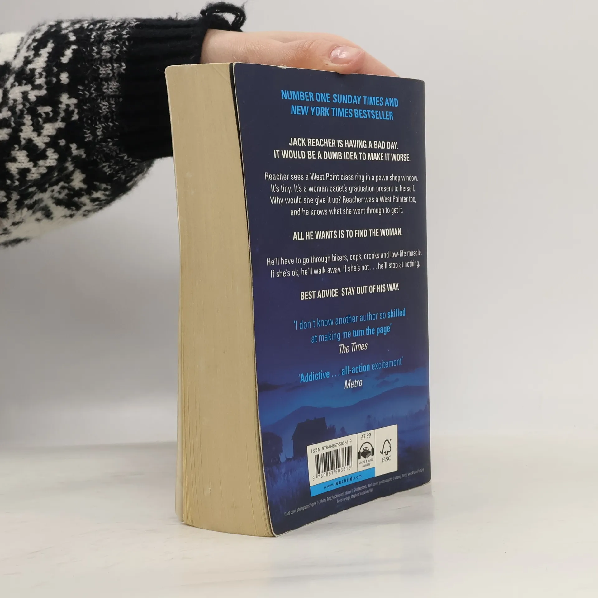 THE NUMBER ONE BESTSELLER NOW A RICHARD & JUDY BOOKCLUB 2018 PICK Jack Reacher is having a bad day. It would be a dumb idea to make it worse. Reacher sees a West Point class ring in a pawn shop window. It's tiny. It's a woman cadet's graduation present to herself. Why would she give it up? Reacher was a West Pointer too, and he knows what she went through to get it. All he wants is to find the woman. He'll have to go through bikers, cops, crooks, and low-life muscle. If she's ok, he'll walk away. If she's not a he'll stop at nothing. Best advice- stay out of his way.