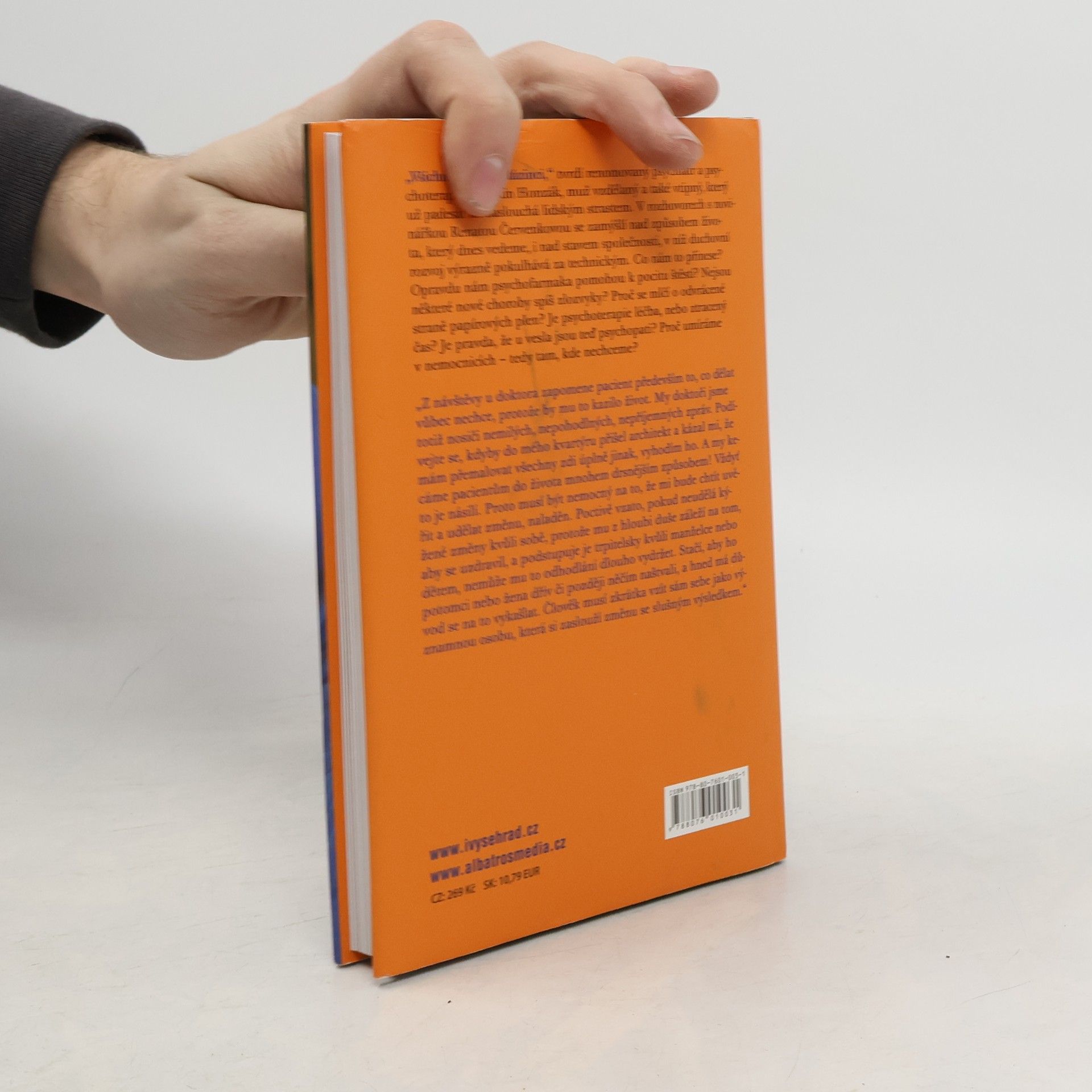 Renomovaný psychiatr a psychoterapeut Radkin Honzák, s padesátiletou praxí naslouchání lidským strastem, v rozhovorech s novinářkou Renatou Červenkovou zkoumá náš způsob života a stav společnosti, kde duchovní rozvoj zaostává za technickým pokrokem. Zajímá se o otázky jako: Jaké důsledky má náš životní styl? Opravdu psychofarmaka vedou k pocitu štěstí? Jsou některé nové choroby spíše zlozvyky? Proč se mlčí o negativních aspektech papírových plen? Je psychoterapie skutečnou léčbou, nebo ztraceným časem? A proč umíráme v nemocnicích, kde to nechceme? Tato témata nejsou příliš povzbudivá, ale Honzák je komentuje s nadhledem a ironií, upozorňující na fenomény dnešní doby, které se „příčí Matce přírodě“ a zajišťují psychiatrům dostatek pacientů do budoucna. Radkin Honzák (* 1939) absolvoval Fakultu všeobecného lékařství UK v Praze v roce 1962 a od té doby pracoval v různých psychiatrických institucích, včetně IKEM a PL Bohnice, kde se věnoval výzkumu a ambulantní psychiatrii. Dnes působí jako asistent na 1. Lékařské fakultě UK.