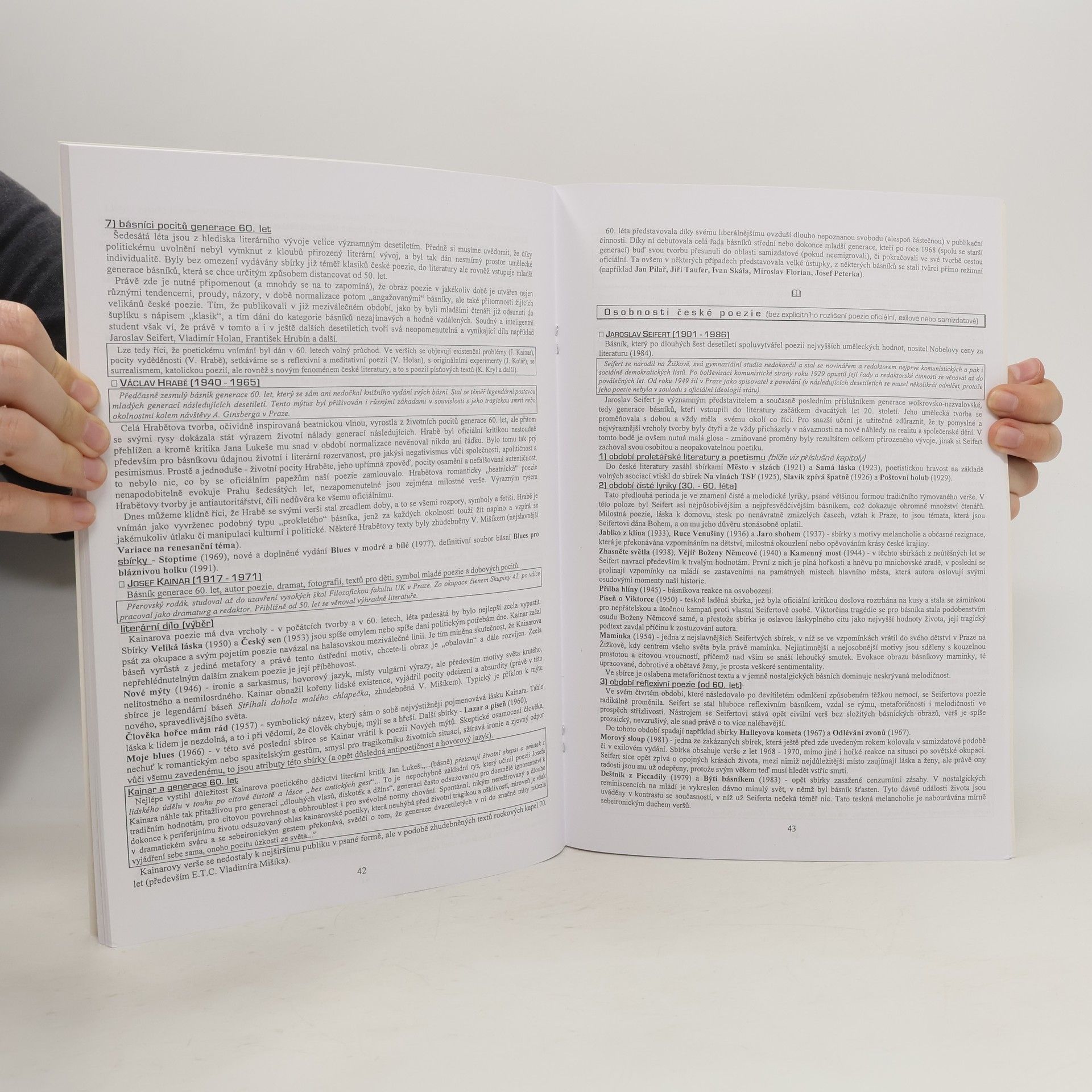 Přehled všech výrazných tendencí v české literatuře 20. století. Podrobnější medailony všech velkých osobností české literatury (autoři nejsou násilně kouskováni dle politických údobí). U důležitých literárních děl stručné obsahy a interpretace. Přehled filmových adaptací většiny literárních děl, politické souvislosti,mnohé zajímavosti. Text je graficky přehledně členěn, nejedná se o pouhý „telefonní“ seznam.