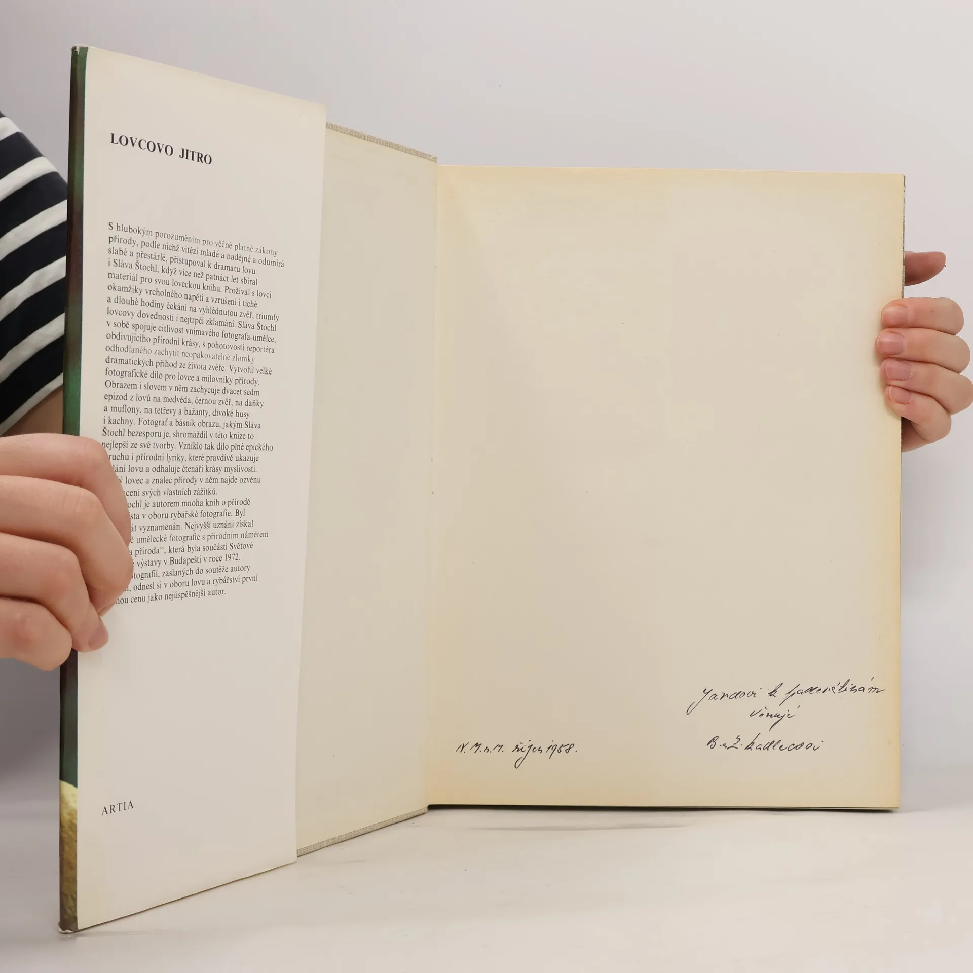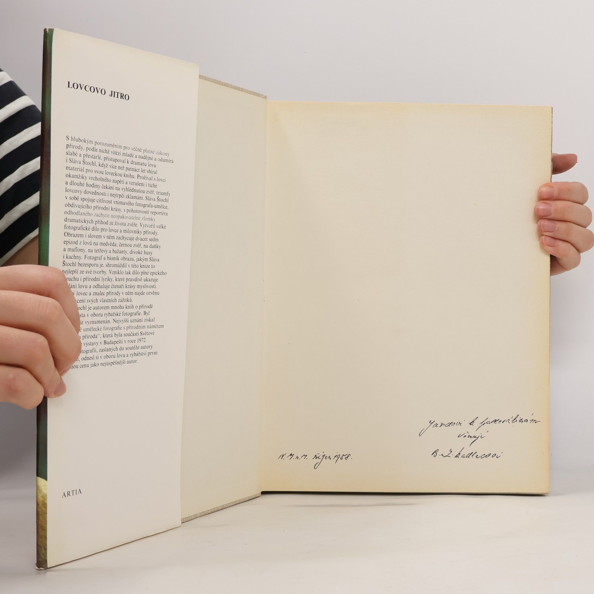 Fotografická publikace je výsledkem trpělivé patnáctileté práce citlivého pozorovatele přírody a zkušeného, pohotového fotografa. Obrazem i slovem autor odhaluje nekonečnou krásu přírody, poslání lovu, jeho drama i poezii. Lyrické záběry se střídají se snímky plnými napětí a dobrodružství při lovu medvěda, srnců a jelenů, tetřevů, divokých kachen a hus.