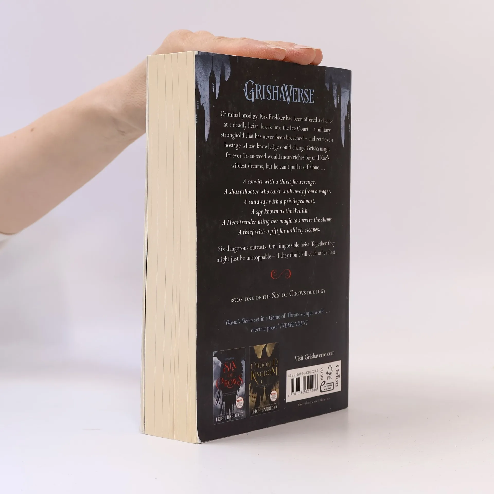 See the Grishaverse come to life on screen with the Netflix series, Shadow and Bone - Season 2 streaming now! Nominated for the CILIP Carnegie Medal 2017, this fantasy epic from the No. 1 NEW YORK TIMES bestselling author of the Grisha trilogy is gripping, sweeping and memorable - perfect for fans of George R. R. Martin, Laini Taylor and Kristin Cashore. Criminal prodigy Kaz Brekker is offered a chance at a deadly heist that could make him rich beyond his wildest dreams - but he can't pull it off alone. A convict with a thirst for revenge. A sharpshooter who can't walk away from a wager. A runaway with a privileged past. A spy known as the Wraith. A Heartrender using her magic to survive the slums. A thief with a gift for unlikely escapes. Six dangerous outcasts. One impossible heist. Kaz's crew is the only thing that might stand between the world and destruction - if they don't kill each other first. An epic new exploration of the Grisha universe from the writer of SHADOW AND BONE, SIEGE AND STORM and RUIN AND RISING, totally consuming for both old fans and new.