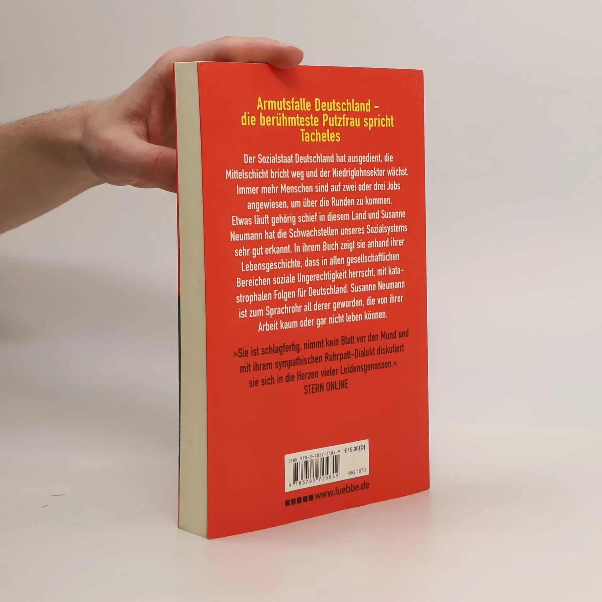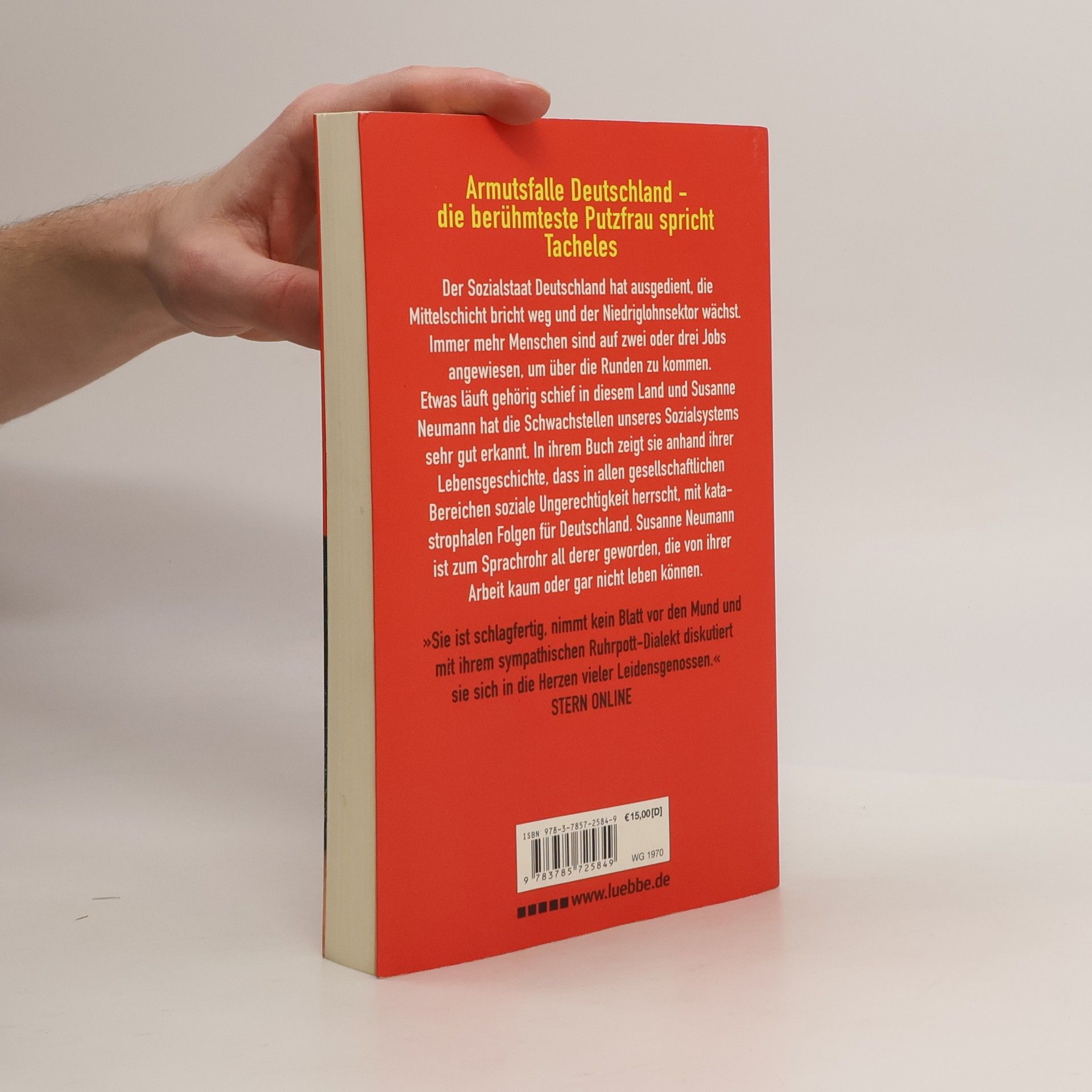 Der Sozialstaat Deutschland hat ausgedient, die Mittelschicht bricht weg, und der Niedriglohnsektor wächst. Immer mehr Menschen sind auf zwei oder drei Jobs angewiesen, um über die Runden zu kommen. Etwas läuft gehörig schief in diesem Land, und Susanne Neumann hat die Schwachstellen unseres Sozialsystems sehr gut erkannt. Aufgrund ihrer eigenen Lebensgeschichte weiß sie genau, was schlechte Bezahlung und die Angst vor dem sozialen Abstieg bedeuten. In ihrem Buch zeigt sie anhand ihrer Lebensgeschichte, dass in allen gesellschaftlichen Bereichen soziale Ungerechtigkeit herrscht, mit katastrophalen Folgen für Deutschland. Susanne Neumann ist zum Sprachrohr all derer geworden, die von ihrer Arbeit kaum oder gar nicht leben können.