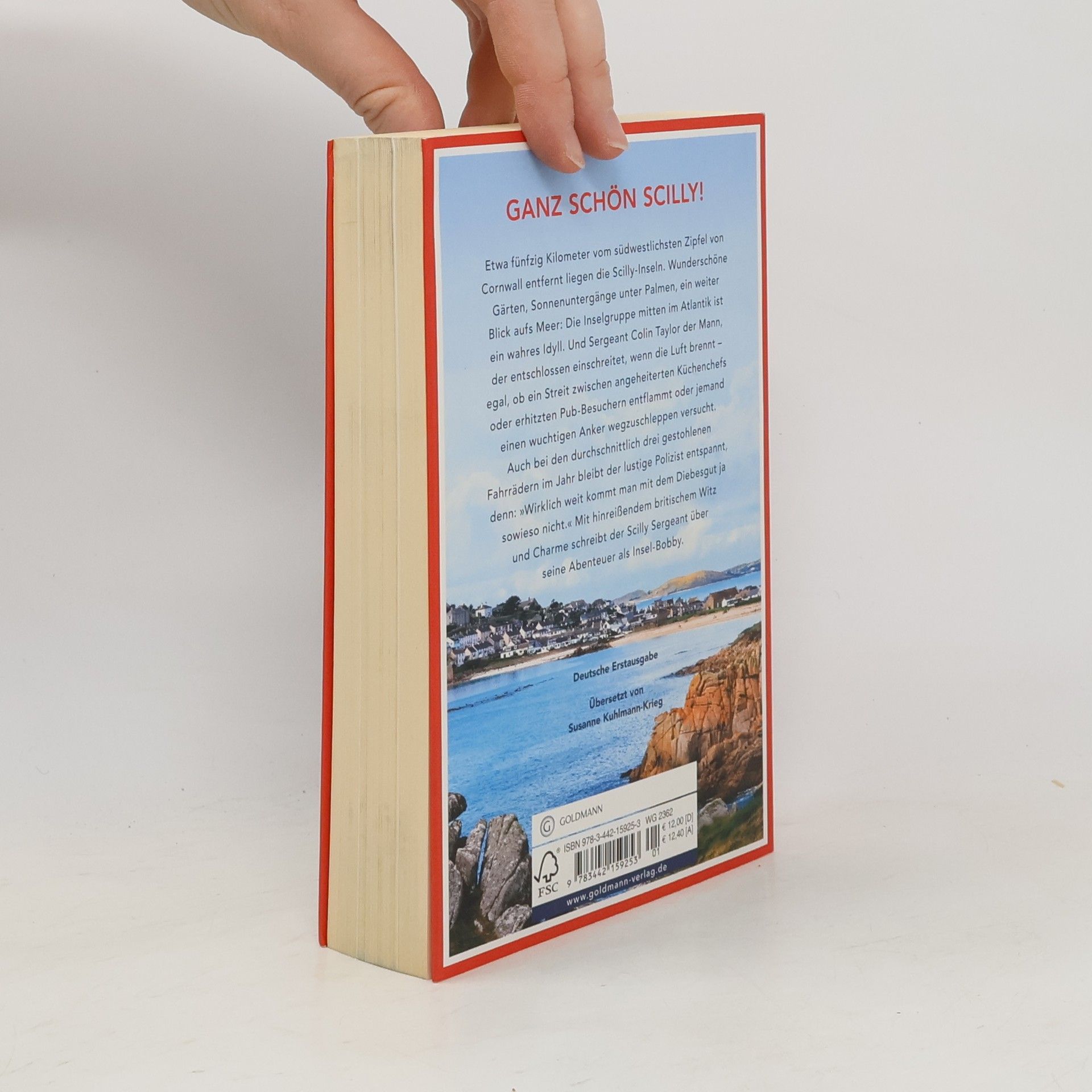 Etwa fünfzig Kilometer vom südwestlichsten Zipfel von Cornwall entfernt liegen die Scilly-Inseln. Wunderschöne Gärten, Sonnenuntergänge unter Palmen, ein weiter Blick aufs Meer: Die Inselgruppe mitten im Atlantik ist ein wahres Idyll. Und Sergeant Colin Taylor der Mann, der entschlossen einschreitet, wenn die Luft brennt – egal, ob ein Streit zwischen angeheiterten Küchenchefs oder erhitzten Pub-Besuchern entflammt oder jemand einen wuchtigen Anker wegzuschleppen versucht. Auch bei den durchschnittlich drei gestohlenen Fahrrädern im Jahr bleibt der lustige Polizist entspannt, denn: „Wirklich weit kommt man mit dem Diebesgut ja sowieso nicht.“ Mit hinreißendem britischem Witz und Charme schreibt der Scilly Sergeant über seine Abenteuer als Insel-Bobby. Ausstattung: mit Farbfotos