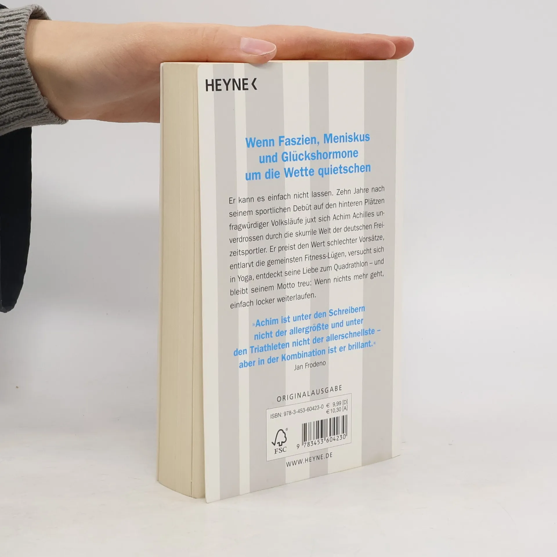 Er kann es einfach nicht lassen. Zehn Jahre nach seinem sportlichen Debüt auf den hinteren Plätzen fragwürdiger Volksläufe juxt sich Achim Achilles unverdrossen durch die skurrile Welt von Millionen deutschen Freizeitsportlern. Er preist den Wert schlechter Vorsätze, entlarvt die gemeinsten Fitness-Lügen, lästert über Yoga, entdeckt seine Liebe zum Quadrathlon – und bleibt seinem Motto treu: Wenn nichts mehr geht, einfach locker weiterlaufen.