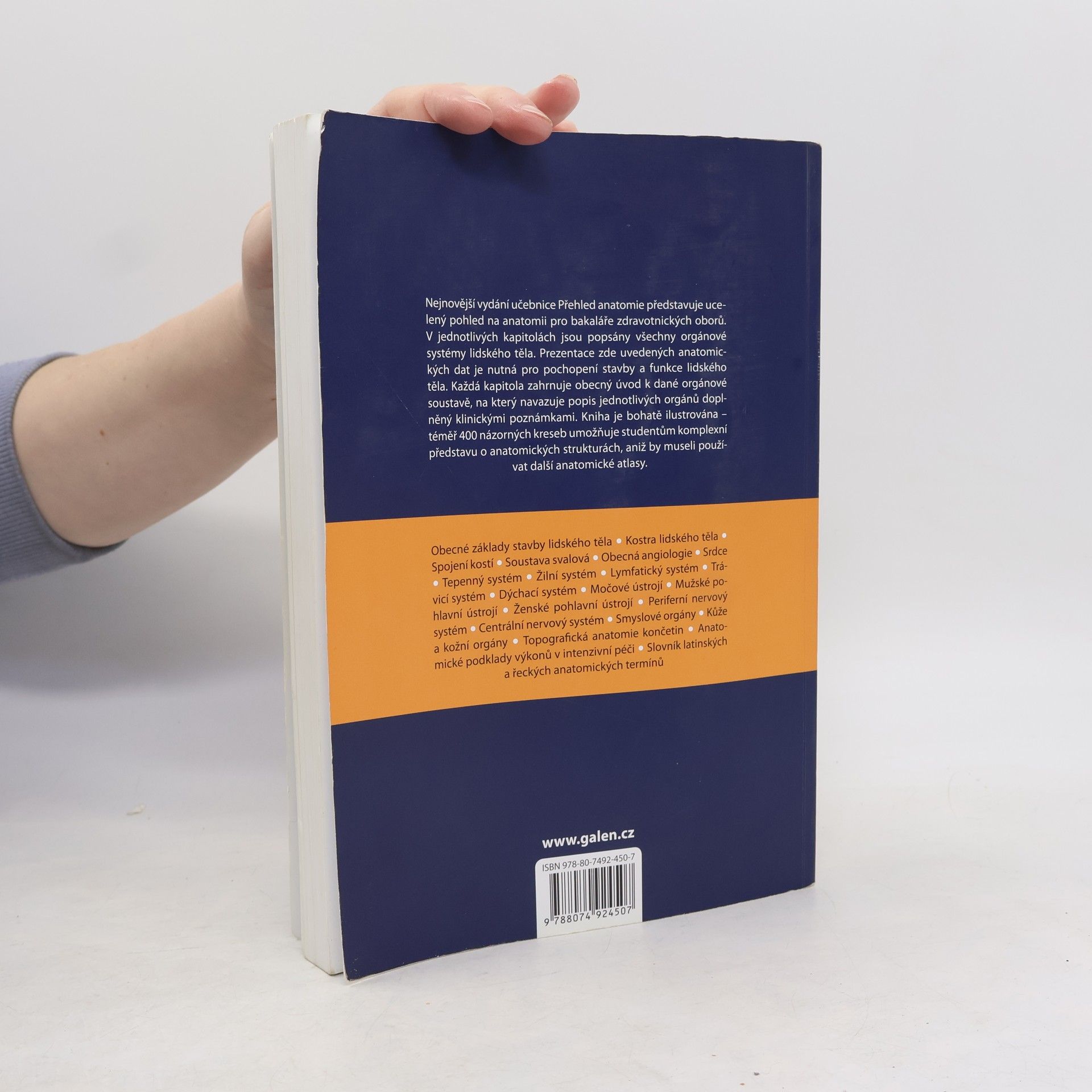Učebnice, která představuje ucelený pohled na anatomii pro bakaláře zdravotnických oborů. V jednotlivých kapitolách jsou popsány všechny orgánové systémy lidského těla. Prezentace zde uvedených anatomických dat je nutná pro pochopení stavby a funkce lidského těla. Každá kapitola zahrnuje obecný úvod k dané orgánové soustavě, na který navazuje popis vlastních orgánů doplněný klinickými poznámkami.