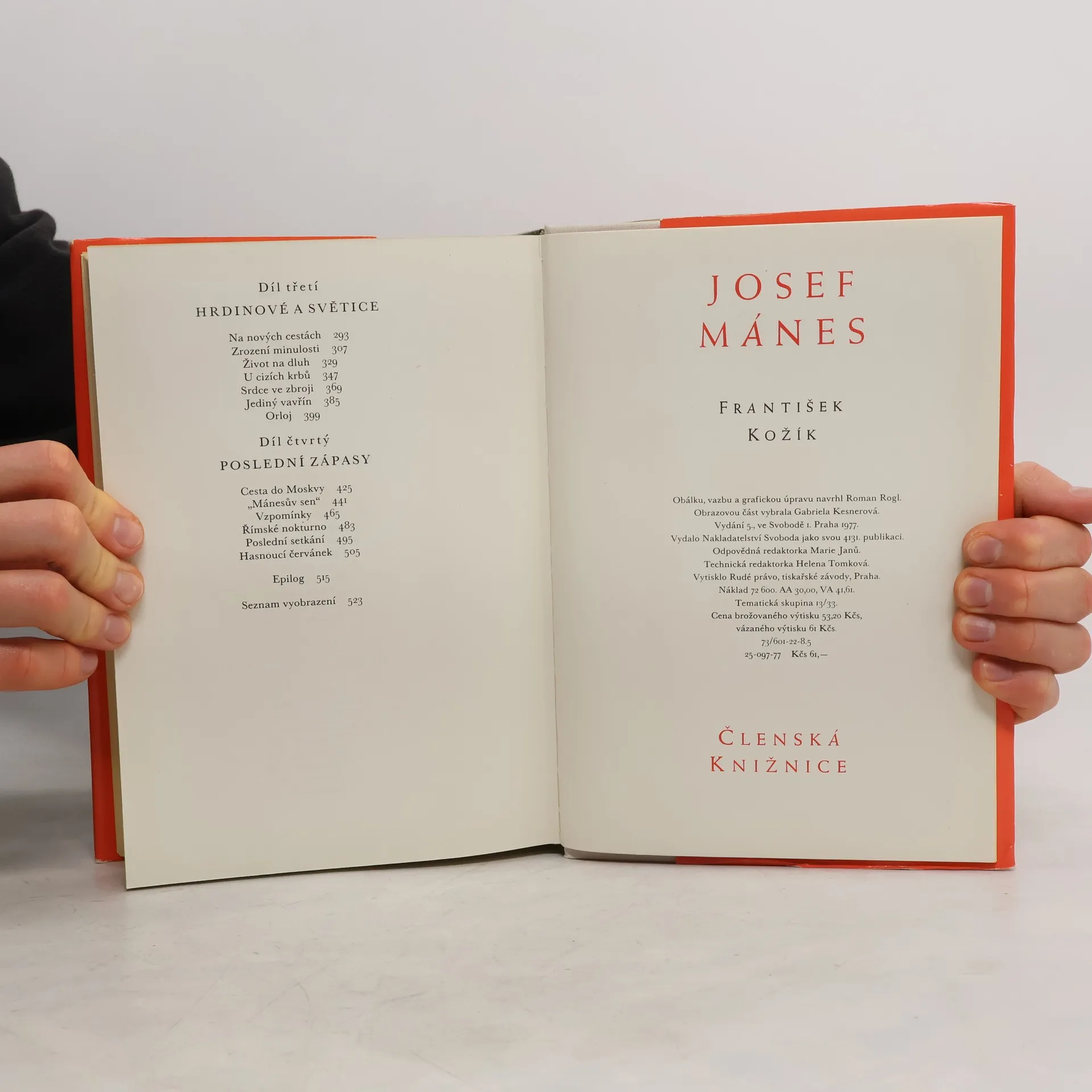 Životopisný román o všestraném malíři 19.století Josefu Mánesovi. Mánesův životopis ode dne narození až po den smrti vypráví Kožík nesmírně kultivovaně. Pro poznání a pochopení malířova díla dělá mnoho už tím, že se soustřeďuje především na umělecké zápasy Josefa Mánesaa jen v jejich souvislostech líčí hrdinovy soukromé osudy. Zdůraznění Mánesova uměleckého usilování umožnilo Kožíkovi vylíčit malíře jako člověka plachého a skromného,jenž se však silou své umělecké pravdy stává vášnivým bojovníkem za nové,velké české umění.