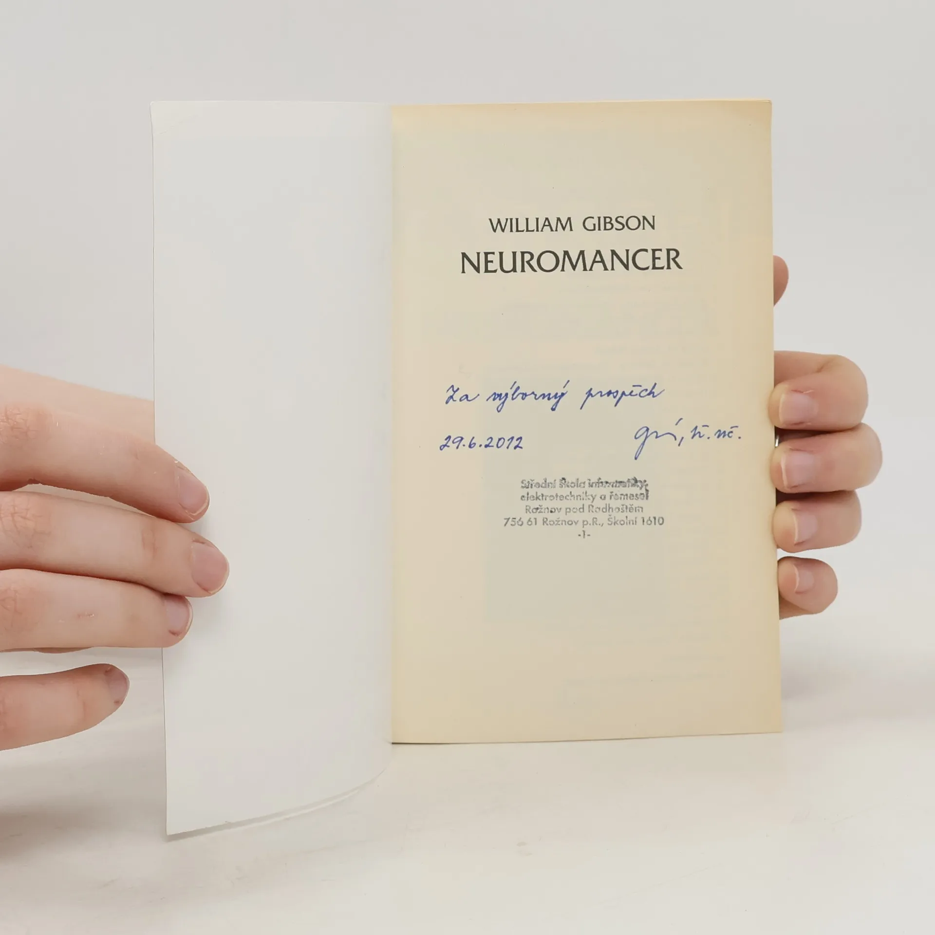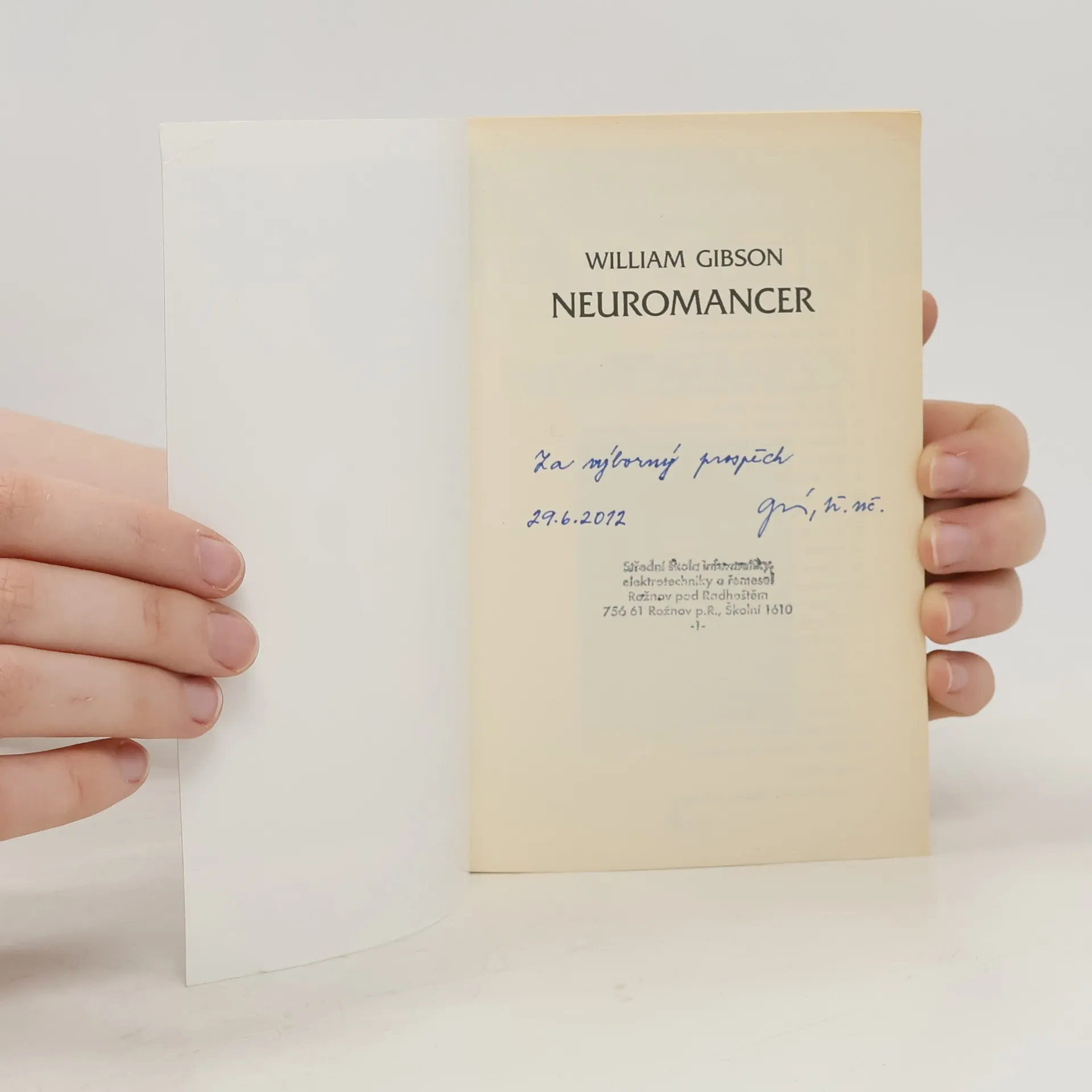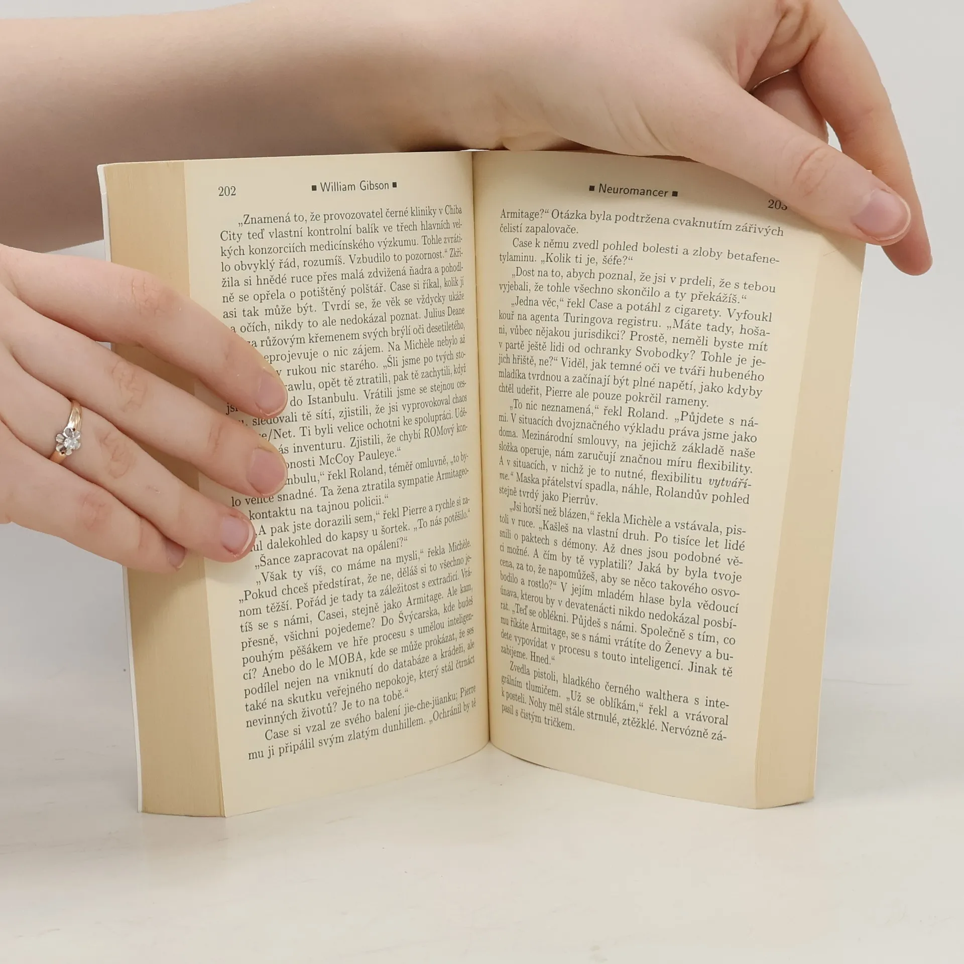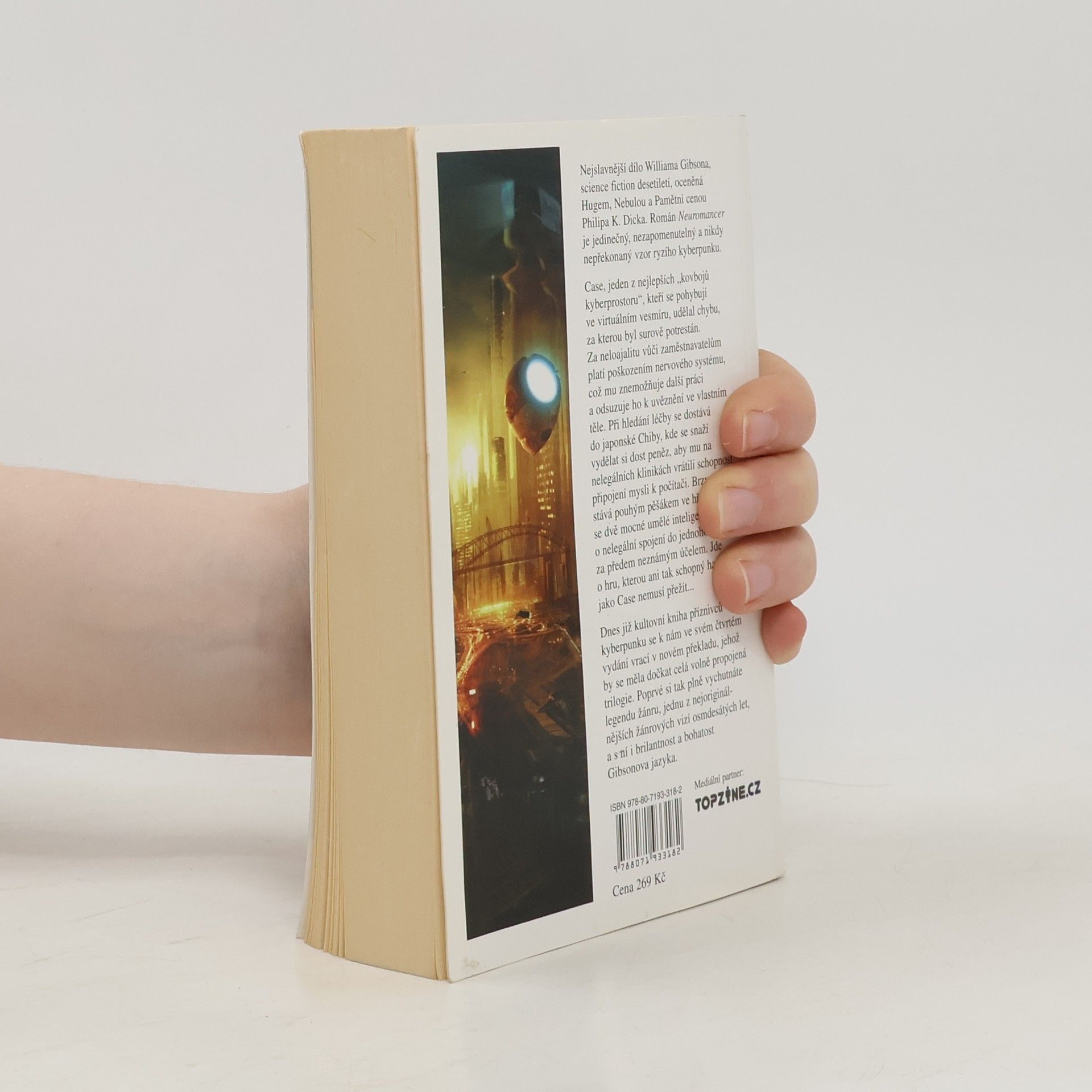Case, jeden z nejlepších „kovbojů kyberprostoru“, kteří se pohybují ve virtuálním vesmíru, udělal chybu, za kterou byl surově potrestán. Za neloajalitu vůči zaměstnavatelům platí poškozením nervového systému, což mu znemožňuje další práci a odsuzuje ho k uvěznění ve vlastním těle. Při hledání léčby se dostává do japonské Chiby, kde se snaží vydělat si dost peněz, aby mu na nelegálních klinikách vrátili schopnost připojení mysli k počítači. Brzy se stává pouhým pěšákem ve hře, v níž se dvě mocné umělé inteligence snaží o nelegální spojení do jednoho celku za předem neznámým účelem. Jde o hru, kterou ani tak schopný hacker jako Case nemusí přežít... Dnes již kultovní kniha příznivců kyberpunku se k nám ve svém čtvrtém vydání vrací v novém překladu, jehož by se měla dočkat celá volně propojená trilogie. Poprvé si tak plně vychutnáte legendu žánru, jednu z nejoriginálnějších žánrových vizí osmdesátých let, a s ní i brilantnost a bohatost Gibsonova jazyka. Science fiction desetiletí odměněná Hugem, Nebulou a Pamětní cenou Philipa K. Dicka.