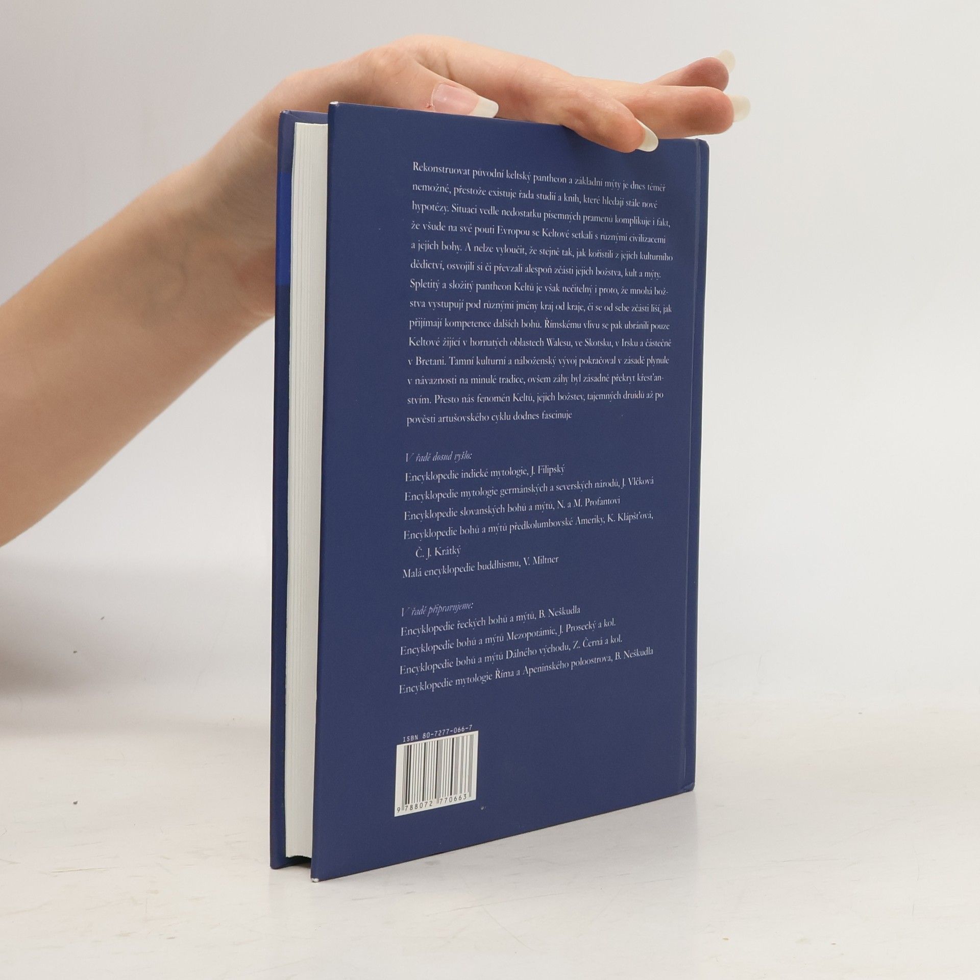 Historička a archeoložka J. Vlčková představuje čtenářům svět svébytných keltských mýtů, tak jak je doložen písemnými prameny, archeologickými výzkumy, ale i jejich pozdějším zpracováním, mj. v pověstném Artušovském cyklu, který vstoupil do obecného povědomí. Po kratší úvodní stati se kniha v abecedním pořádku věnuje jednotlivým keltským božstvům a dalším uctívaným předmětům, rostlinám i zvířatům či svatyním Keltů, ale rovněž postavám a výkladům artušovského cyklu, který vychází ze světa keltských představ, byť už silně ovlivněných křesťanstvím.