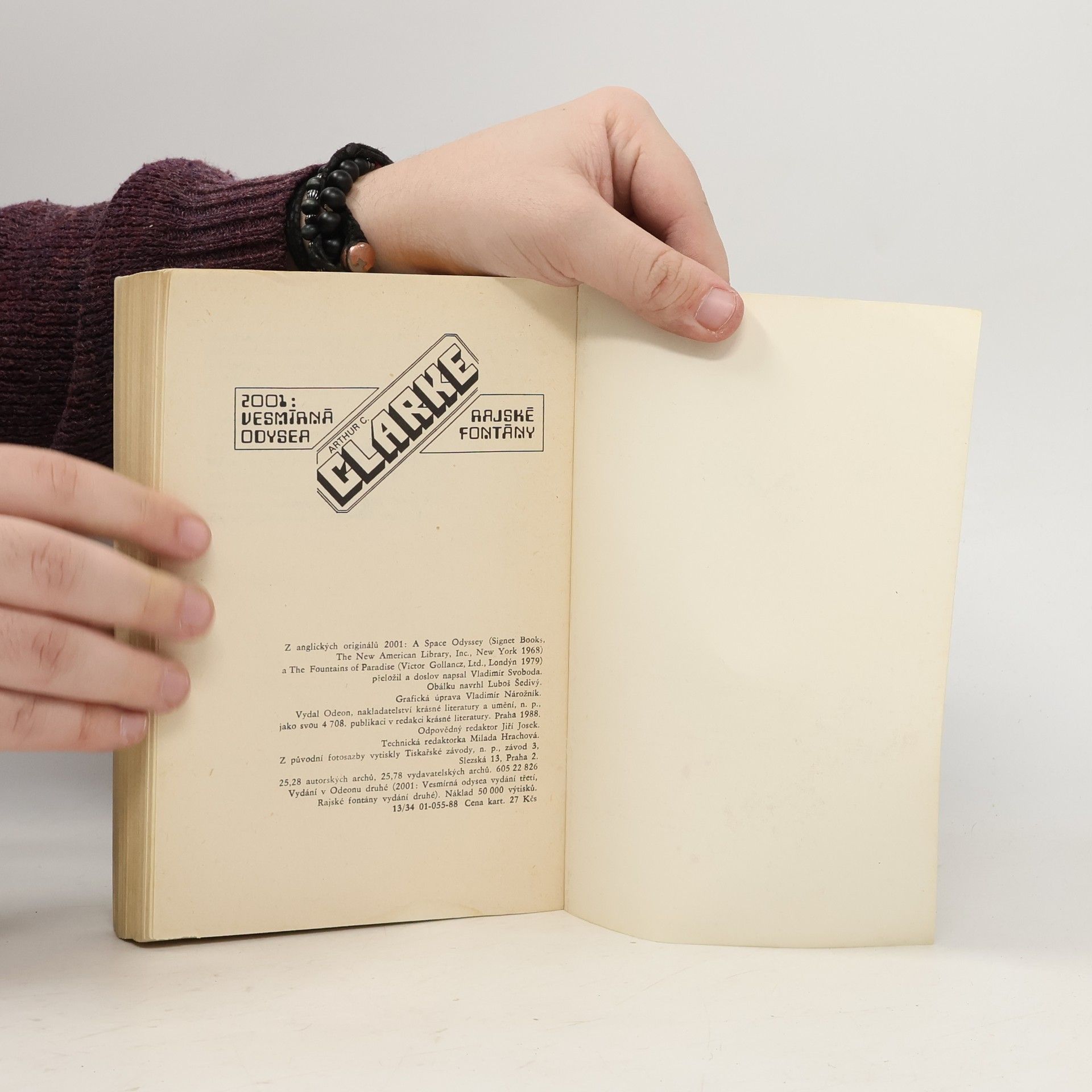 2001: Vesmírná odyssea Na Měsíci je objeven záhadný objekt. Důsledky nálezu jsou natolik významné, že je kvůli němu vůbec poprvé vyslána lidská posádka hluboko do Sluneční soustavy. Ale než výprava dosáhne cíle, vyskytnou se potíže, narůstající do děsivých rozměrů… Slavný román napsaný v době, kdy přistání na Měsíci bylo ještě pouhým snem, přetvořený do jednoho z nejvýznamnějších filmů všech dob, strhující, prorocký. 2001: Vesmírná odysea je příběhem o přetrvávající otázce místa člověka ve vesmíru. Rajské fontány: Rajské fontány je vědeckofantastický román Arthura C. Clarka, vydaný v roce 1979. Události odehrávající se v 22. století popisují konstrukci kosmického výtahu. Tato „orbitální věž“ jest gigantická konstrukce, která se tyčí z povrchu zemského a je propojena se satelitem na geostacionární orbitě ve výšce asi 36 000 kilometrů. Taková stavba by měla být použita pro dopravu nákladu na oběžnou dráhu bez použití raket, čímž by se stala velice efektivní.