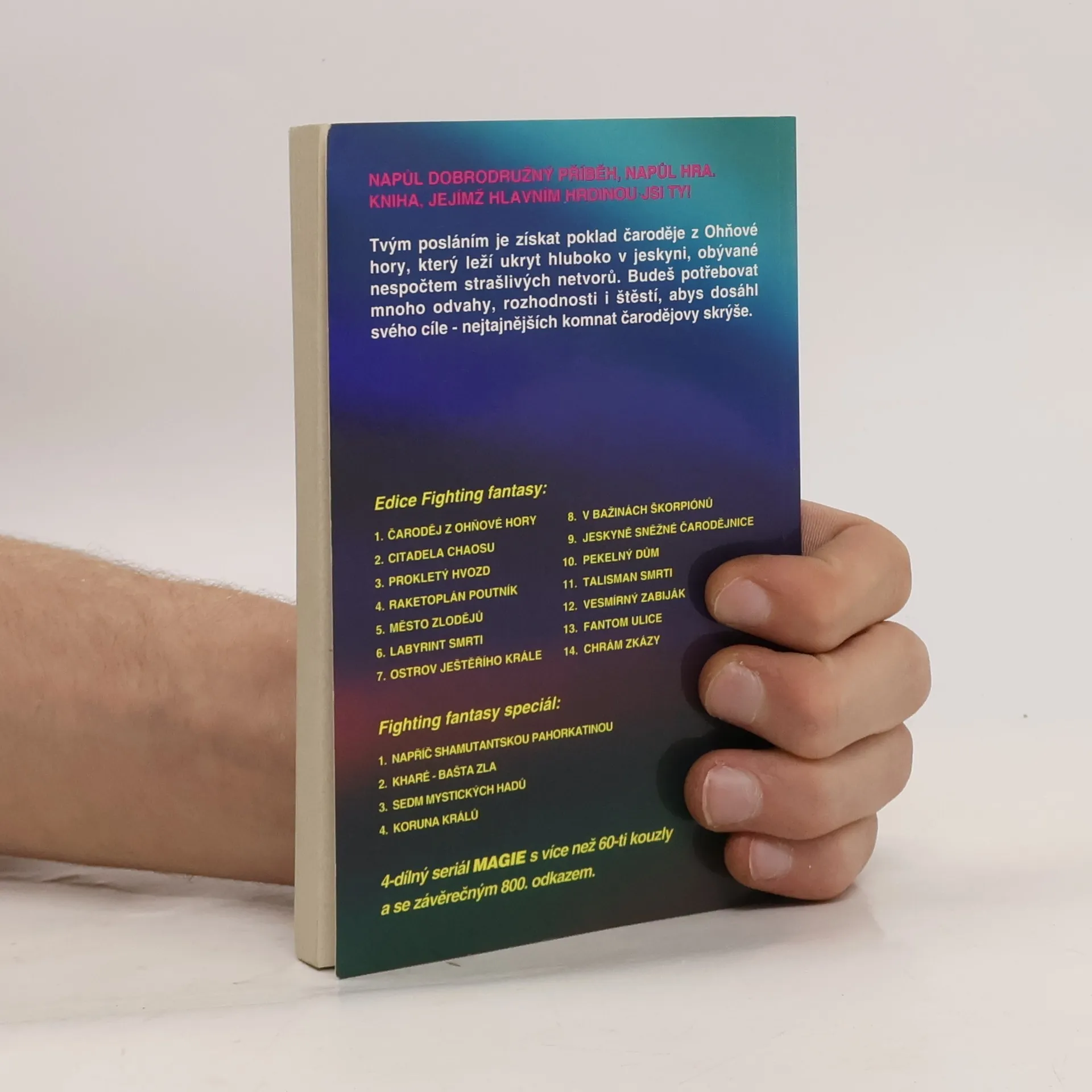 Tvým posláním je získat poklad čaroděje z Ohňové hory, který leží ukryt hluboko v jeskyni, obývané nespočtem strašlivých netvorů. Budeš potřebovat mnoho odvahy, rozhodnosti i štěstí, abys dosáhl svého cíle – nejtajnějších komnat čarodějovy skrýše.